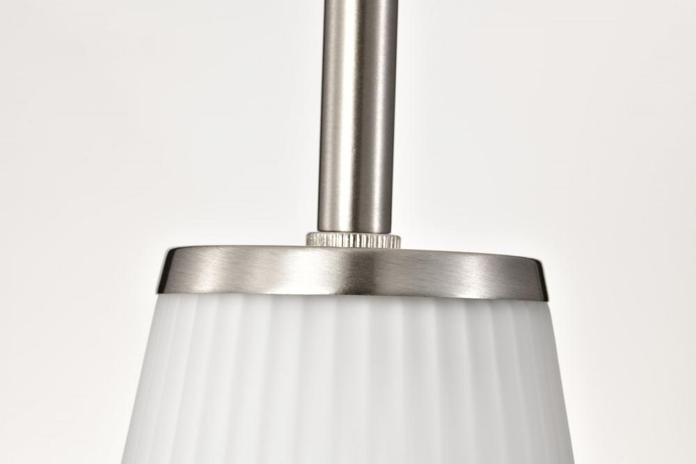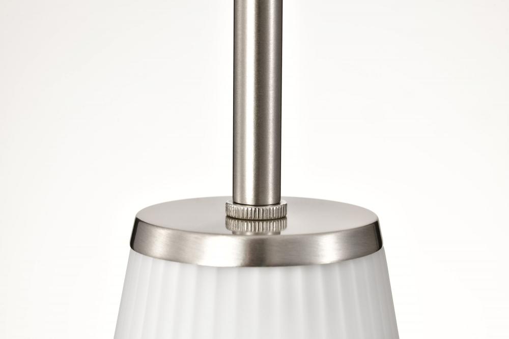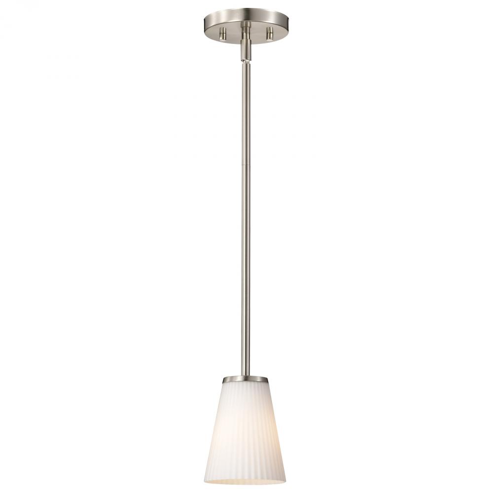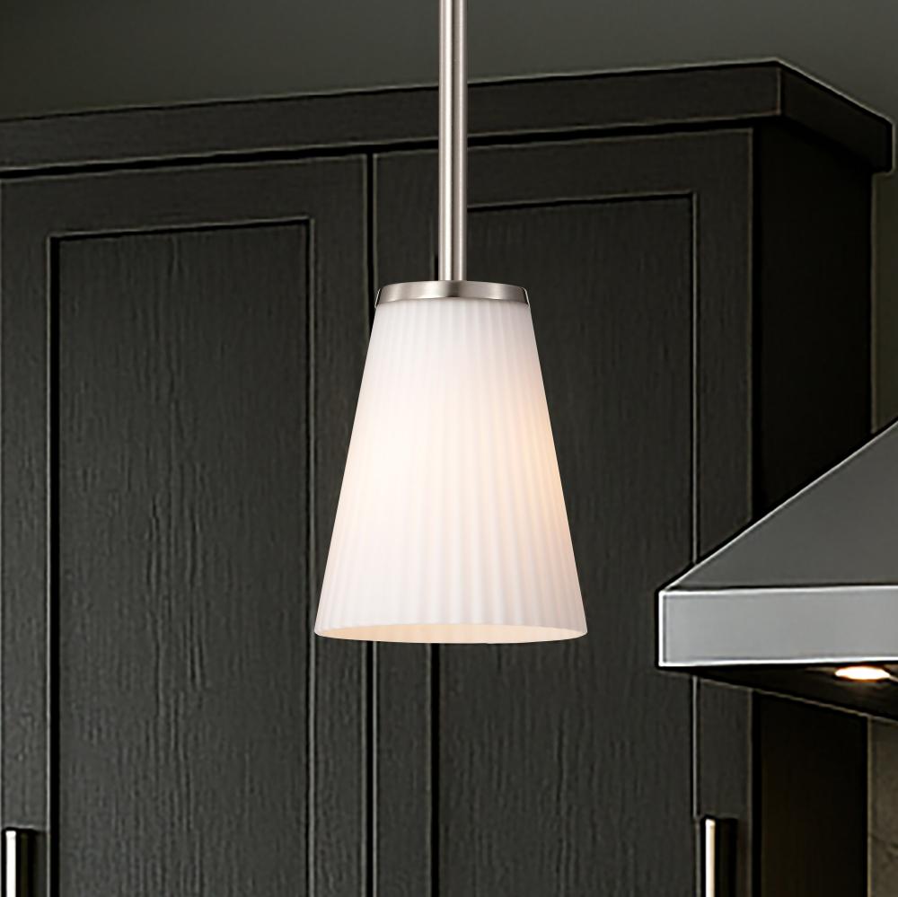 Indulge in the glamour of the Royale 60-8737 one light mini pendant, where sleek Art Deco silhouettes meet modern refinement. The satin white pleated glass adds texture and sophistication, diffusing light with a soft, radiant glow. Finished in brushed nick