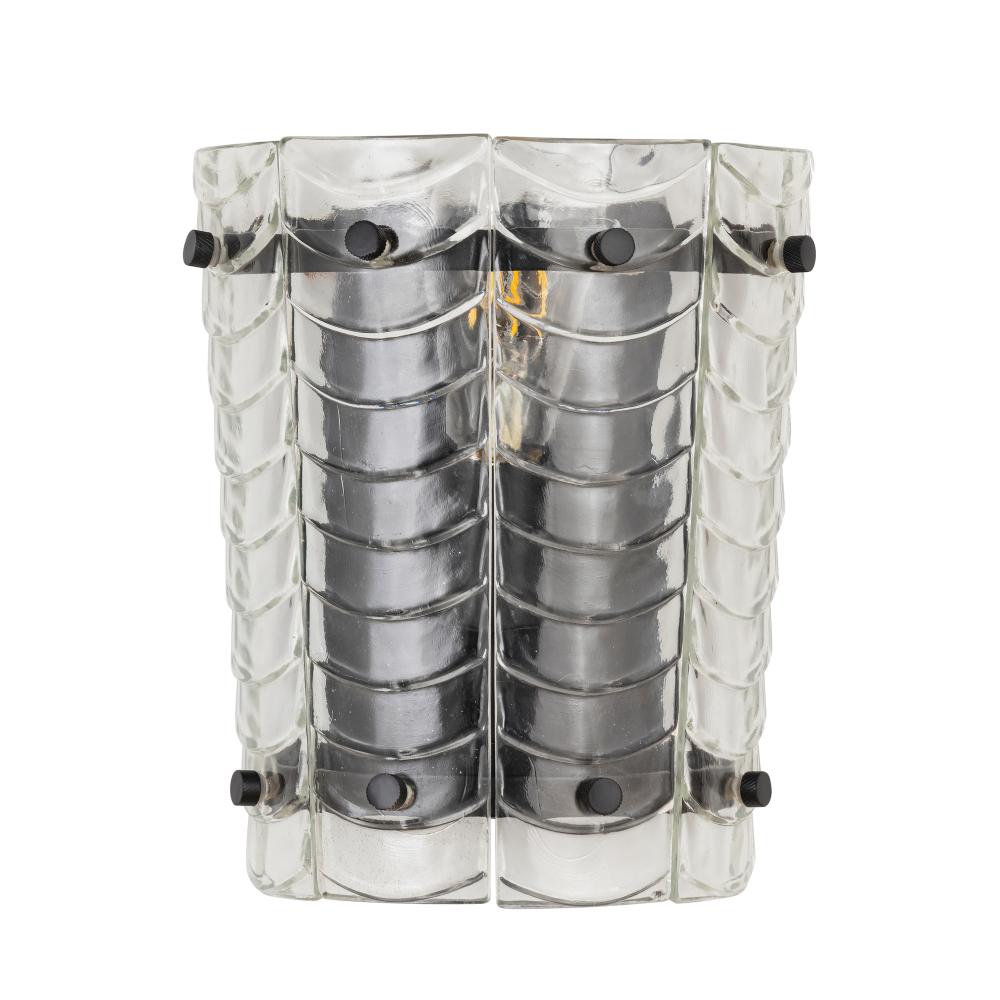Evoking the softness of fabric through sculpted solids, thick clear cast glass panels, each with a tiered scallop motif, are gathered into tapered cone silhouette that shimmers with texture and depth. Framed in a rich Dark Bronze finish, the design feels b