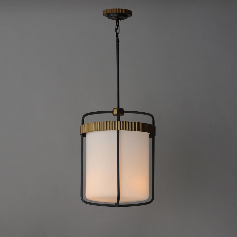 Featuring ridged collars of Antique Brass on a matte Black frame, the design of this series of chandeliers, pendants, semi-flush mounts and sconce lighting offers a transitional and stately companion to fixtures in coordinating finishes. The lighting is di