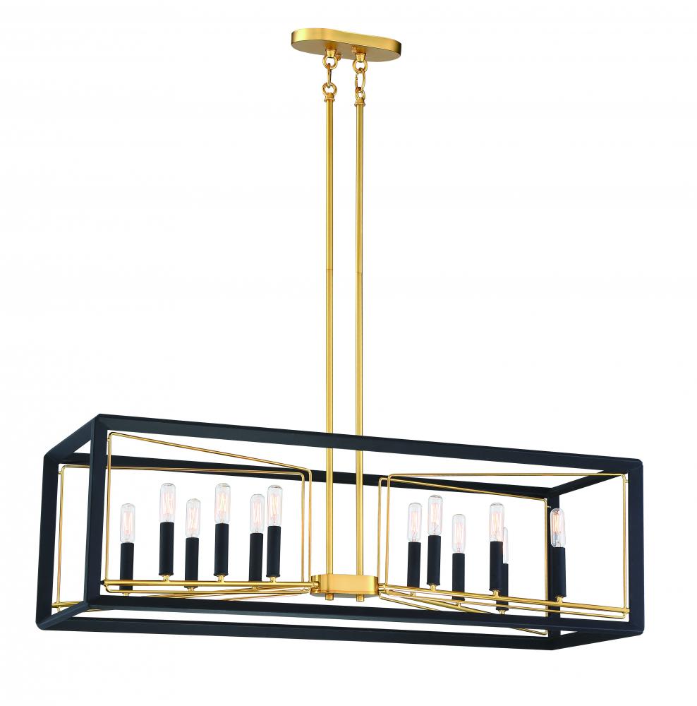 12 Light Island with Steel in Sand Black with Honey Gold Accent finish