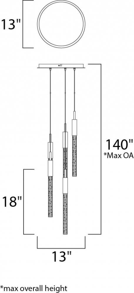 Slender beveled cut rods of bubble glass, illuminated by high power LED modules, suspend in an array of fashionable configurations. Available in Black Chrome with Clear bubble glass and Anodized Bronze with Champagne bubble glass.