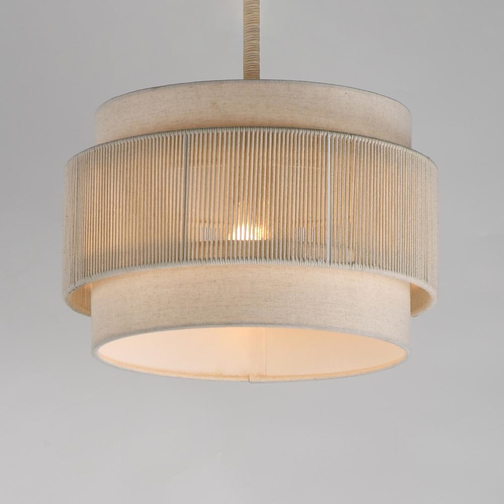 The Seacliff collection blends coastal charm with transitional elegance. Its centerpiece features twisted cotton strands, filtering light beautifully while adding texture and visual interest. Above and below the band of cotton twine, an Off-White linen sha