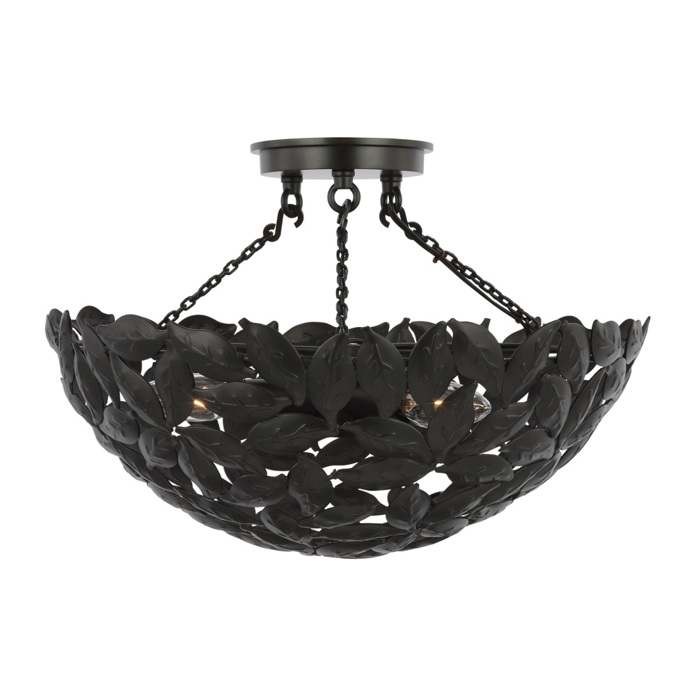 Drawing inspiration from a classic bowl pendant and nature. The Kelan series by Alexa Hampton features a leaf motif, detailed by hand in a stunning display that captivates the design. Crafted with meticulous attention to detail, the delicate motif leaves gracefully cascade from the central fixture, casting a warm and inviting glow Kelan is a soft, feminine contemporary piece that is beautiful in any space. Available sizes include small, medium, and large lanterns.