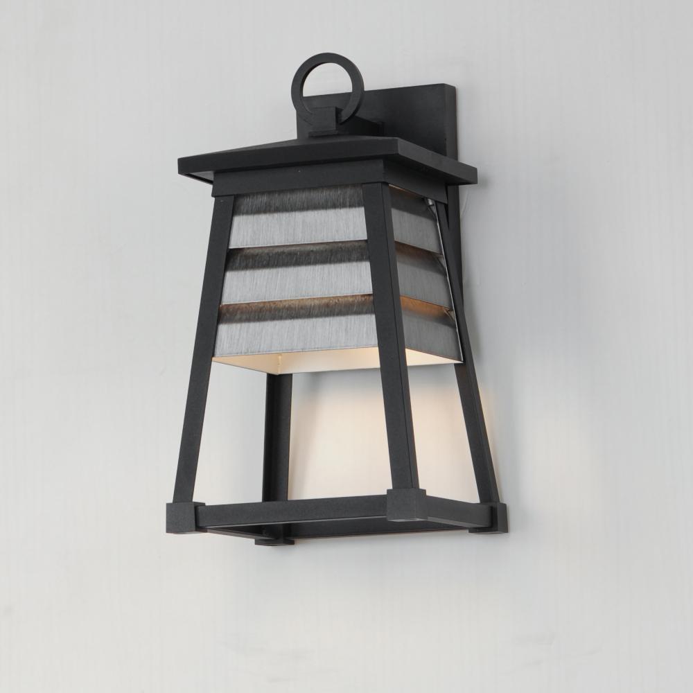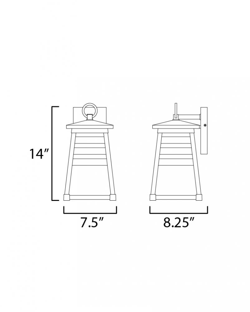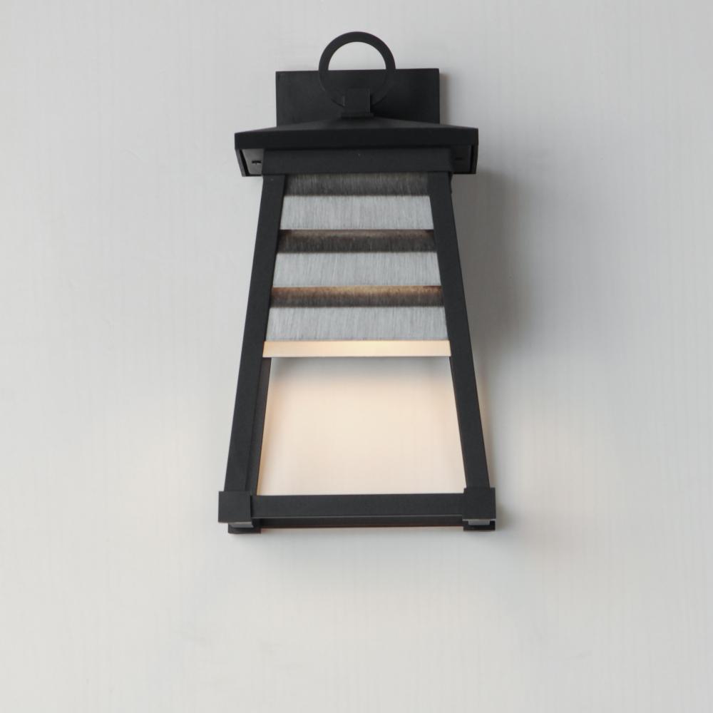Contrasting louvered insets are set within Matte Black trapezoidal frames. The frames are made of Vivex so their finish will withstand harsher climates. The louvered panel insets are made of aluminum and feature a full cut-off design aesthetic making this