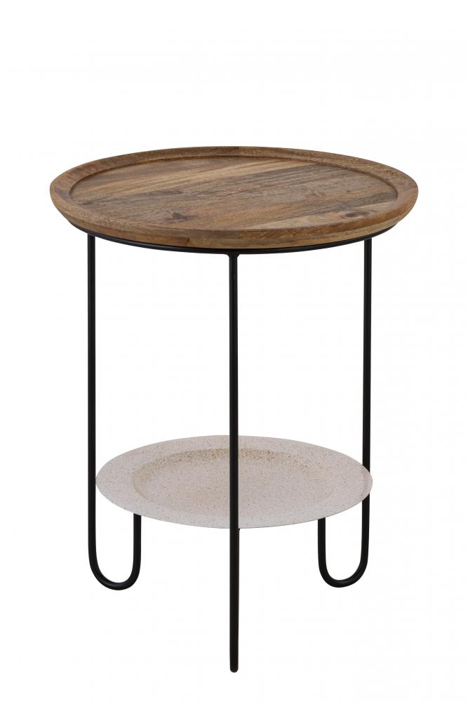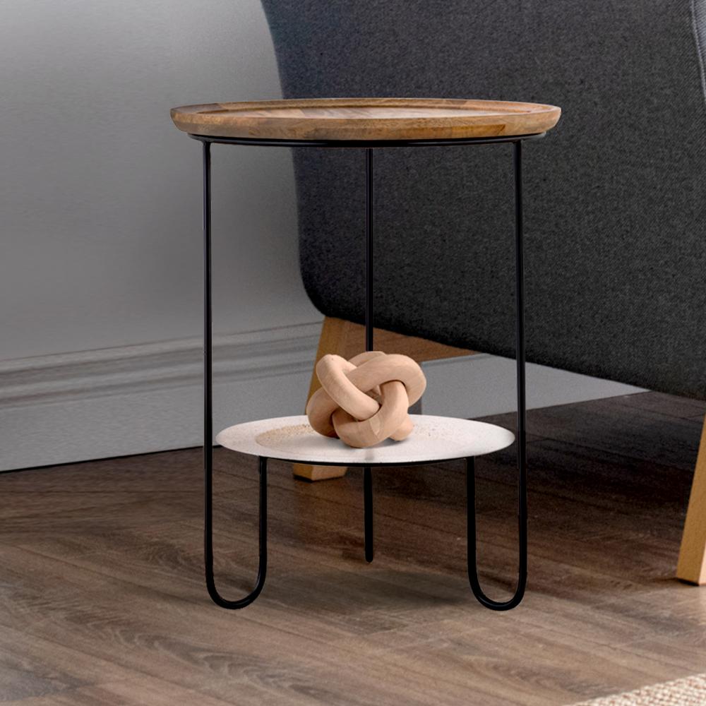 Elevate your home decor with the SHYLAH Black with Natural Wood Side Table, a perfect blend of contemporary design and timeless elegance. Crafted with meticulous attention to detail, this side table is not just a piece of furniture, but a statement of style and functionality. Made from high-quality iron and natural wood, this table combines durability with sophisticated aesthetics, making it an ideal addition to any living room, bedroom, or office.