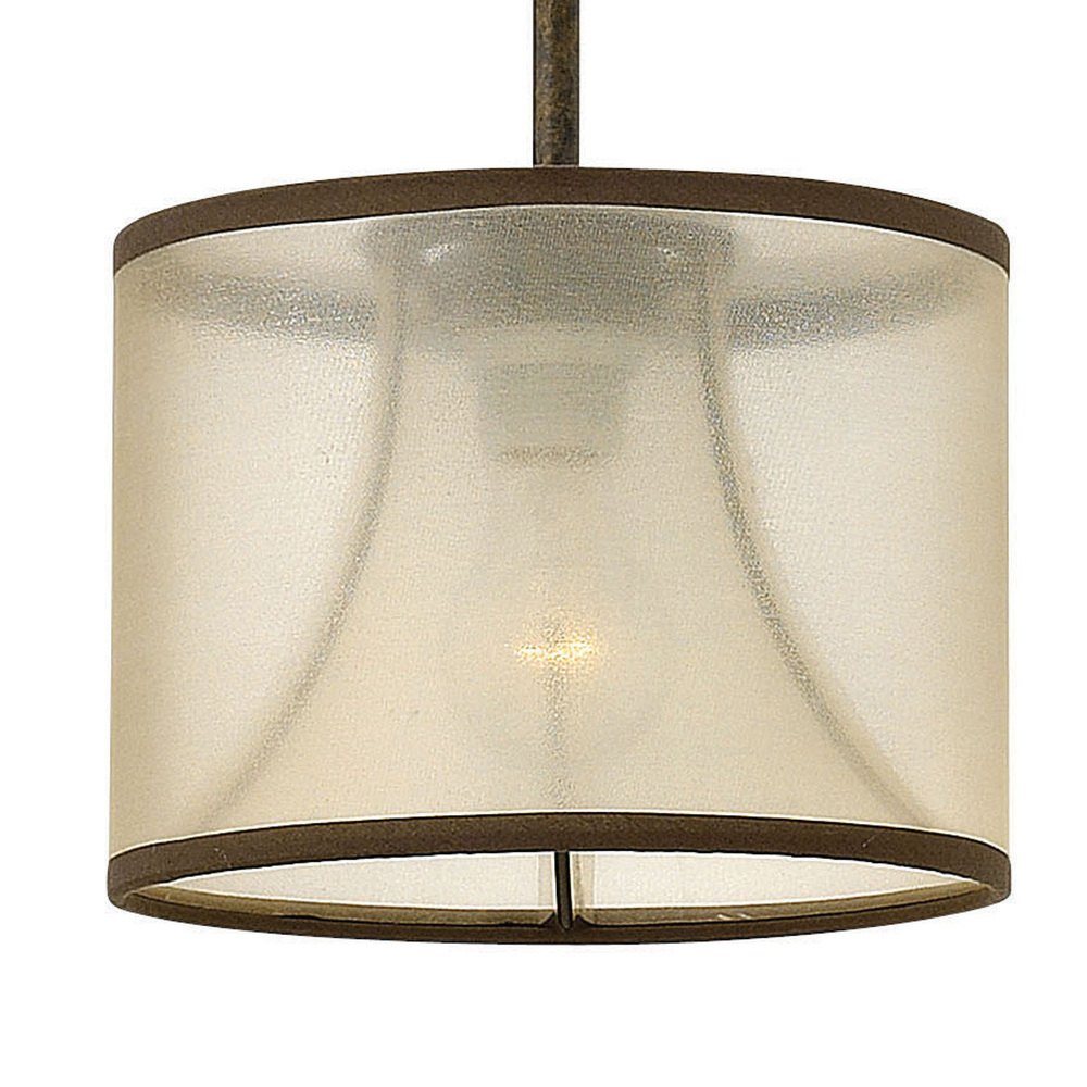 This elegant collection in our Brushed Nickel and French Bronze finish features a sheer translucent double hardback shade and tapered square crystal accents.