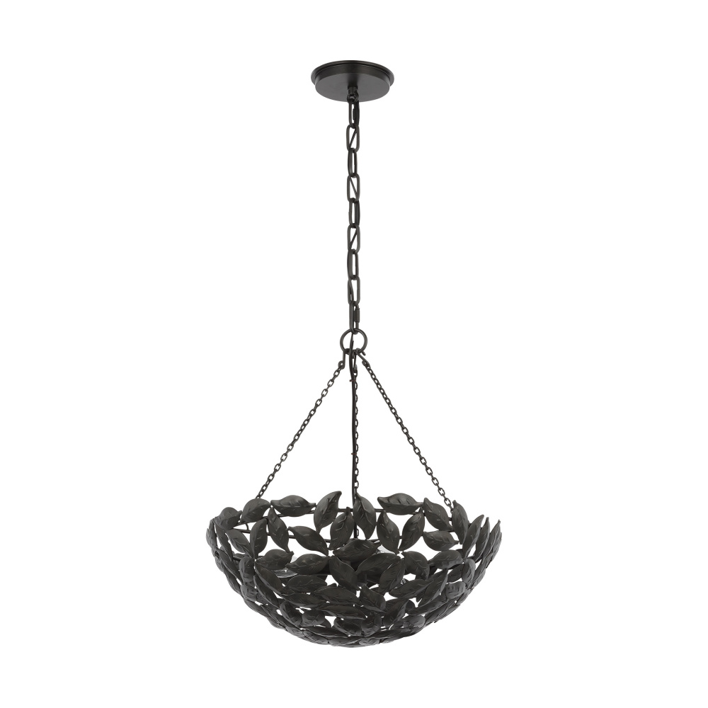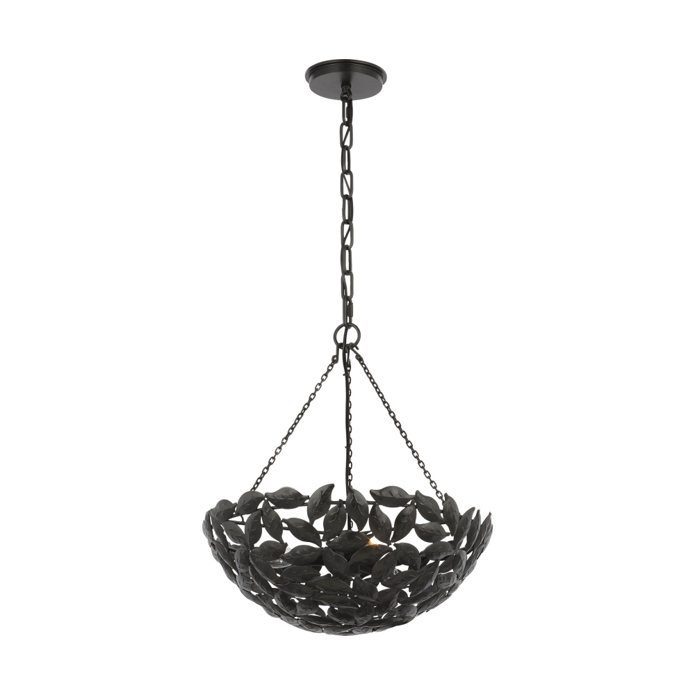 Drawing inspiration from a classic bowl pendant and nature. The Kelan series by Alexa Hampton features a leaf motif, detailed by hand in a stunning display that captivates the design. Crafted with meticulous attention to detail, the delicate motif leaves gracefully cascade from the central fixture, casting a warm and inviting glow Kelan is a soft, feminine contemporary piece that is beautiful in any space. Available sizes include small, medium, and large lanterns.