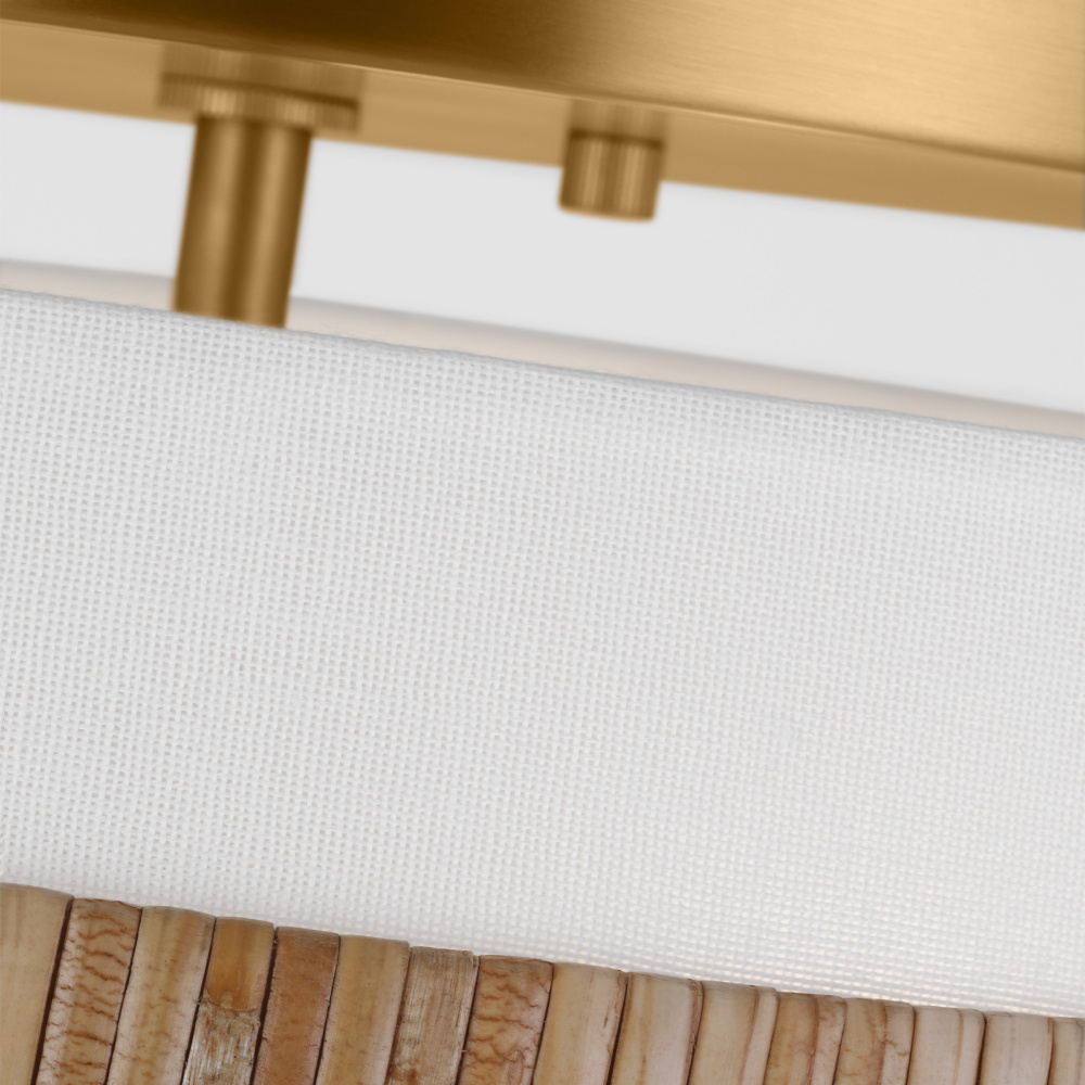 The Cordtlandt series by Alexa Hampton has a simple, purposeful design, making it a perfect addition to any uptown chic décor. The round-shaped flush mount features an etched glass diffuser and a decorative end stem that ties the look together. Updated with a rattan woven ring detail elevates the design with a coastal vibe.