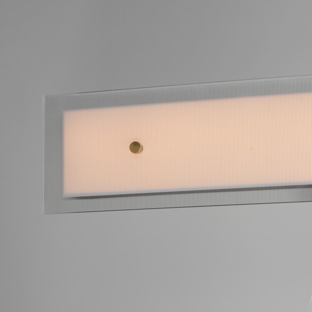 Panes of clear ribbed glass are secured with oversized knurled Natural Aged Brass pins on a Matte Black frame. Obscured by the glass texture, the integrated LED is not only soft on the eyes but also provides an abundance of illumination. Varied configurati