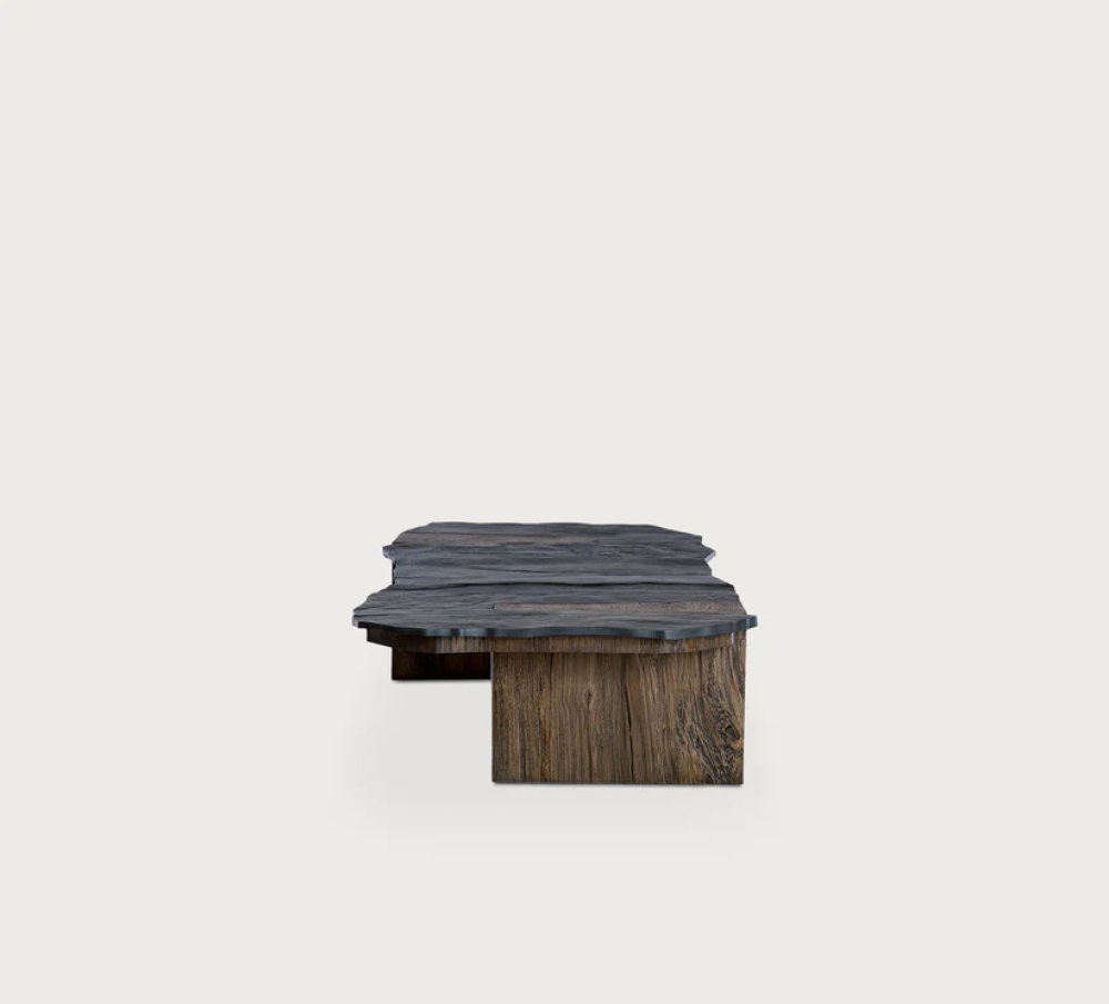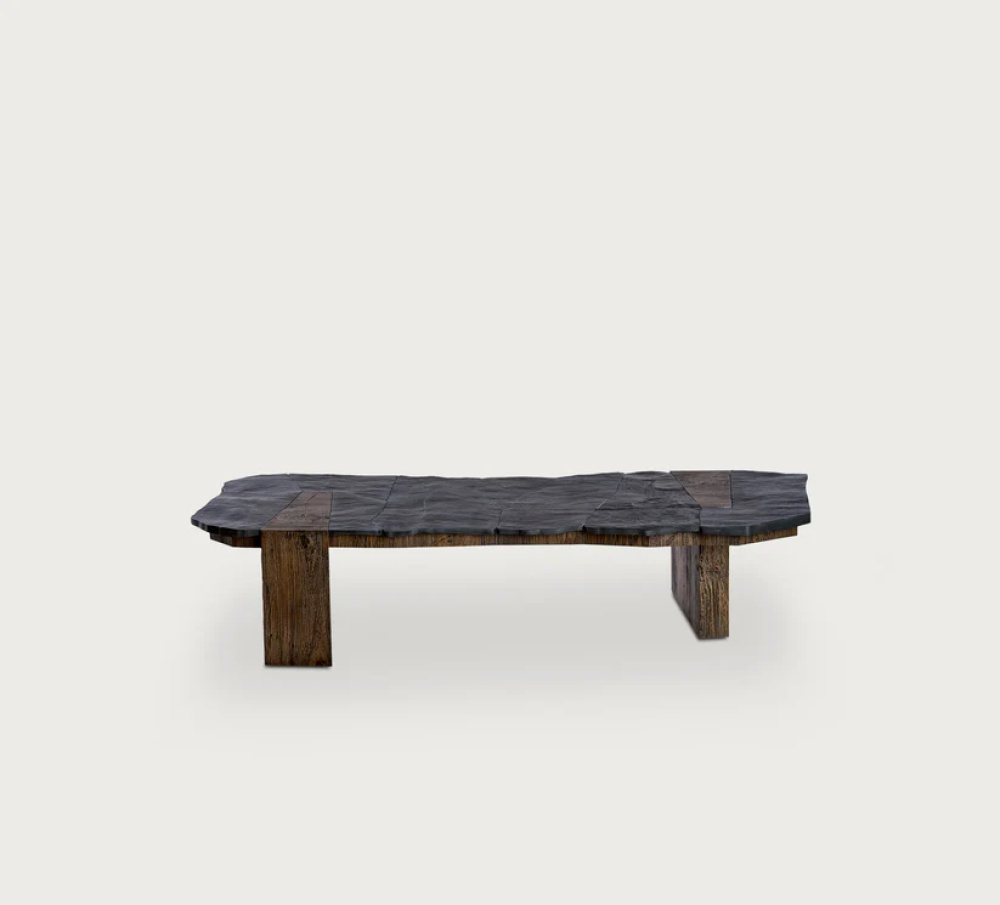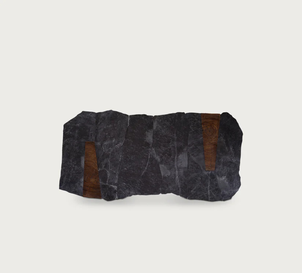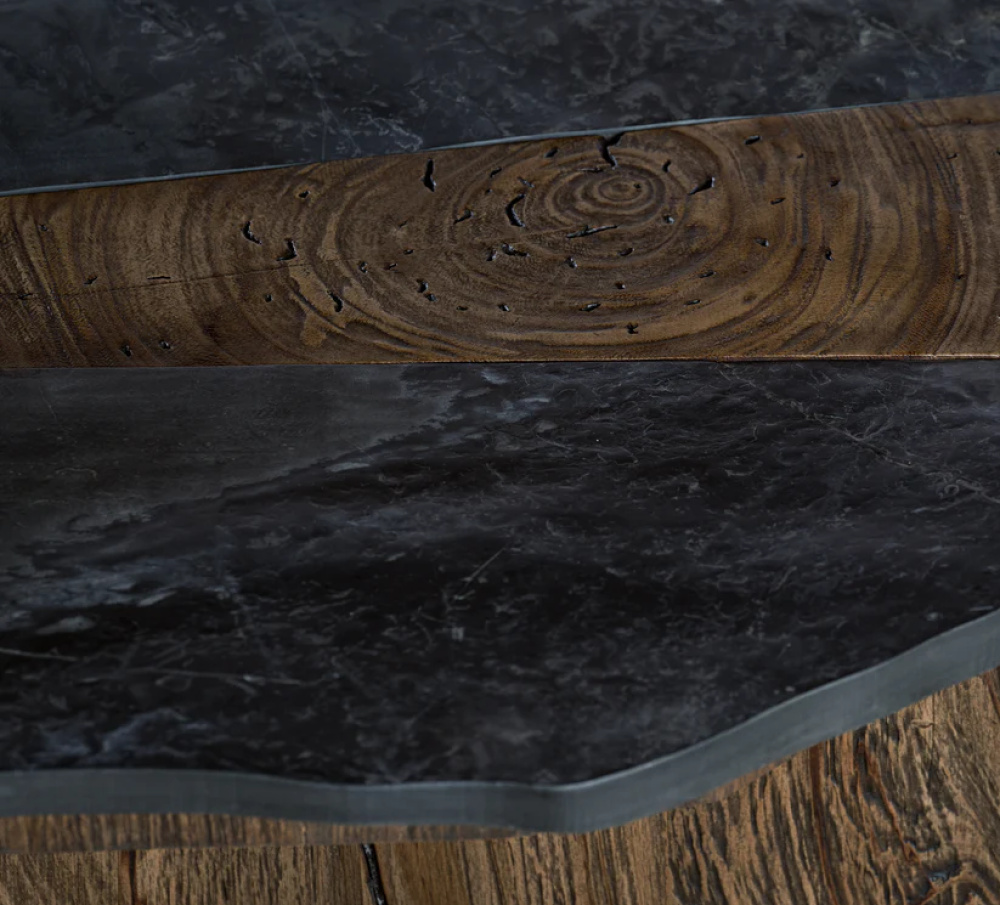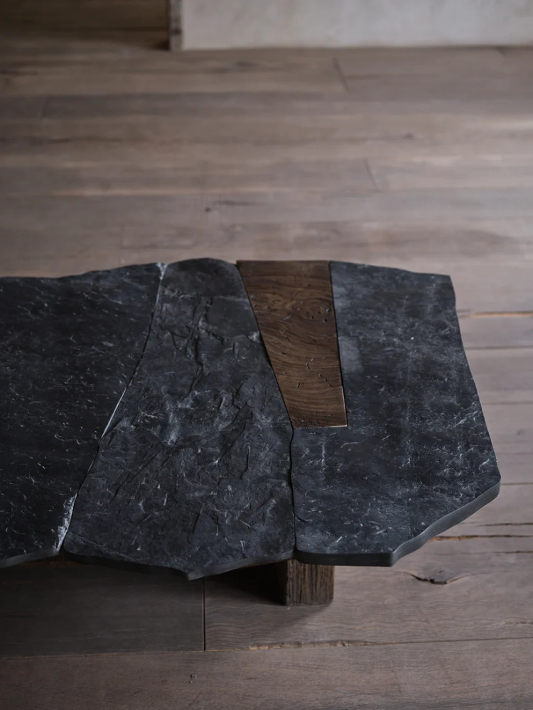 Speiro Coffee Table, Black Mixteca Stone Slab, Light Burnt Alder Finish