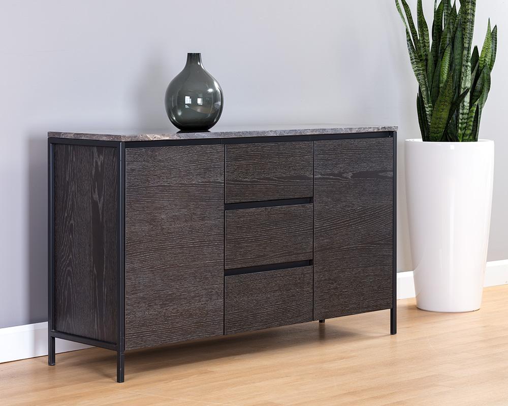 Stamos Sideboard - Black - Grey Marble / Charcoal Grey