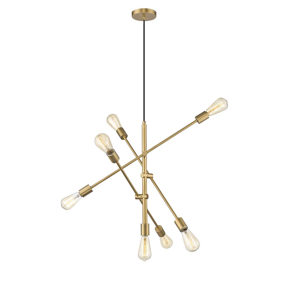 We proudly welcome the Starr to our pendant lighting lineup! A splendid array of exposed bulbs and dynamic, pivoting arms criss-crossing his frame create a giant asterix of energy waiting to be illuminated. His modern vibe will blend seamlessly with a wide setlist of interiors, from industrial lofts to chic chateaus. The Starr will shine confidently when outfitted in classic black or groovy aged-brass, always ready to perform.