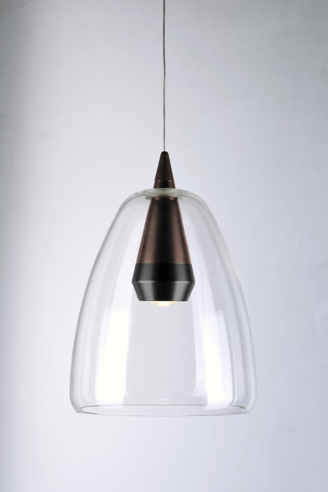 Clear glass domes are suspended from a machined aluminum font finished in your choice of two tone Silver with a Polished Chrome accent or Black with a brushed Coffee finish. Housed inside the machined font is a high power LED module which illuminates witho
