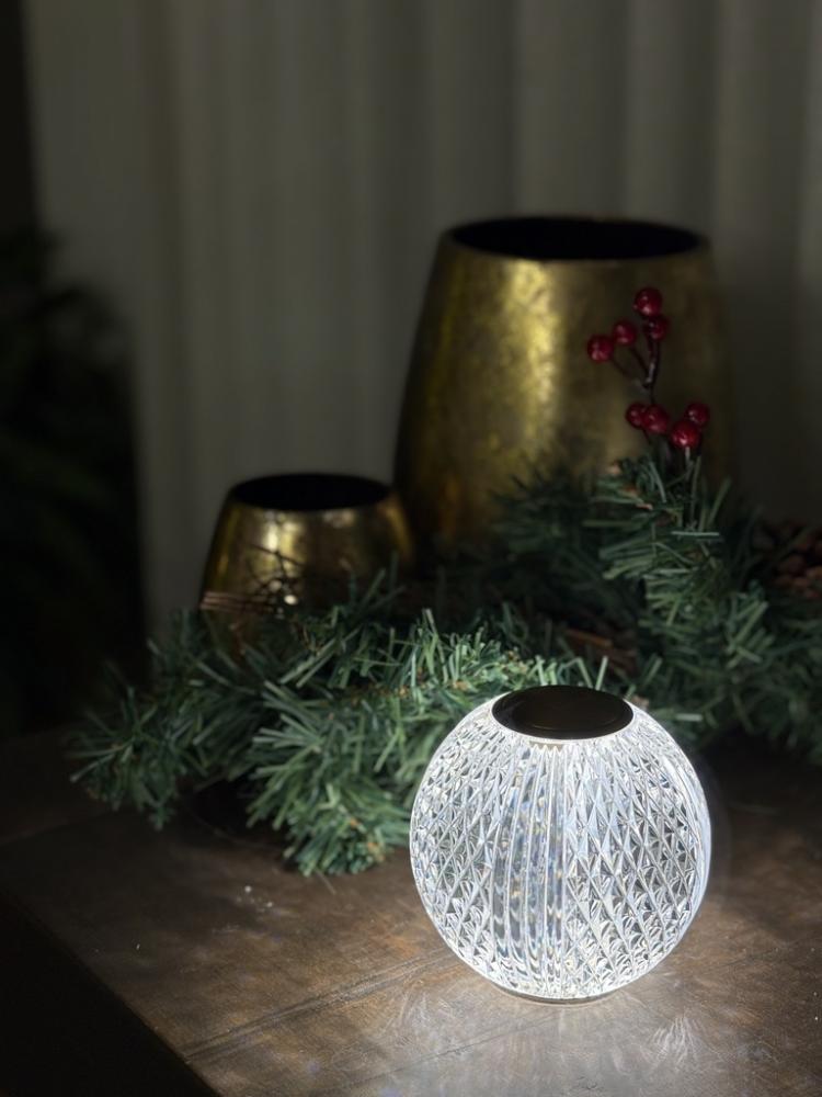 In need of a touch of ambience and intriguing style that can travel effortlessly from room to room? Allow our Sybill touch lamp to cast a sparkling spell over your space. With mesmerizing patterns etched across her acrylic surface, Sybill emits a delightful glow. A simple touch of her golden crown will provide three brightness options. Accompanied by a removeable clear base and USB charging cord, she is as versatile as she is mobile. Your home is your castle, and with Sybill in your corner, it will always be magical.