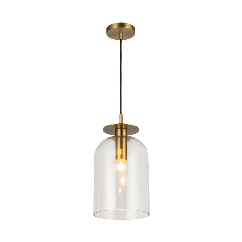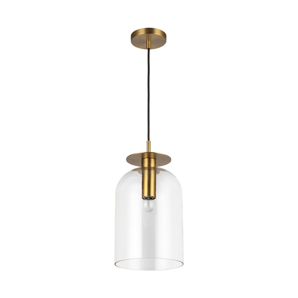 Sylvia 8-in Brushed Gold/Clear Glass 1 Light Pendant