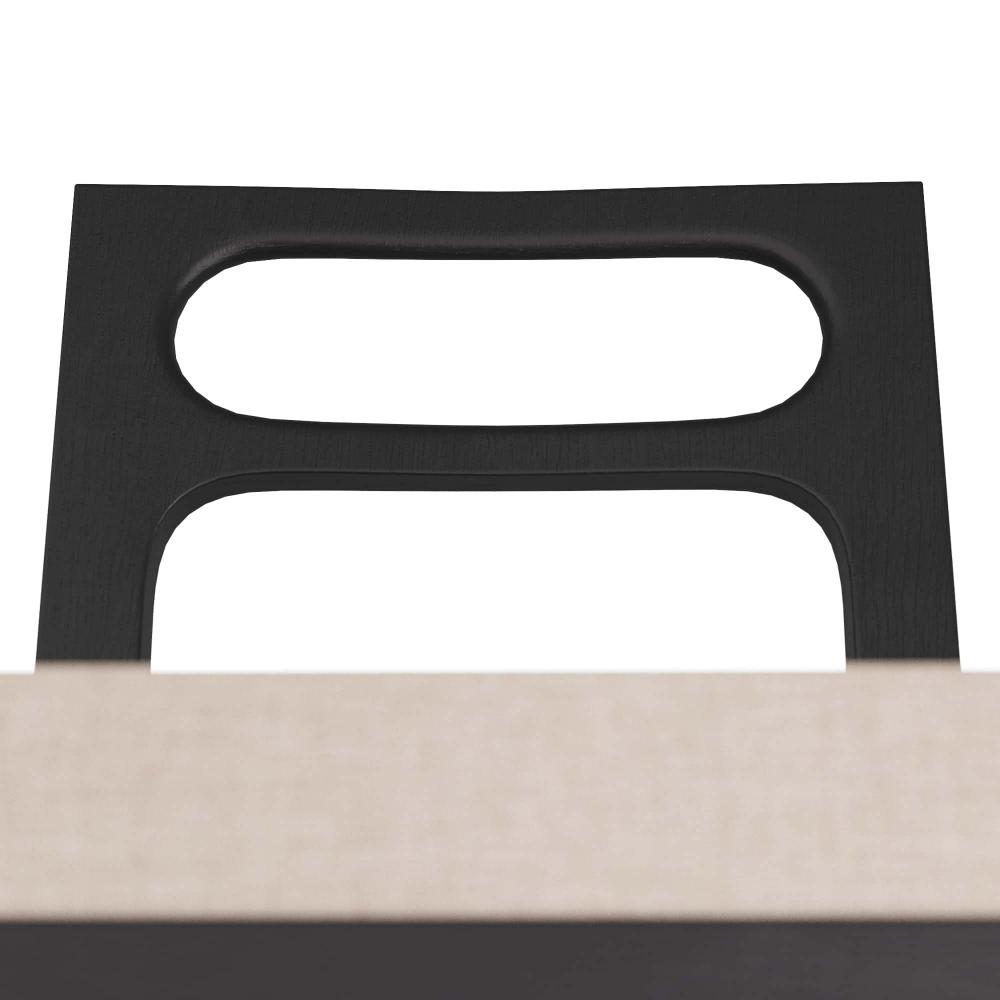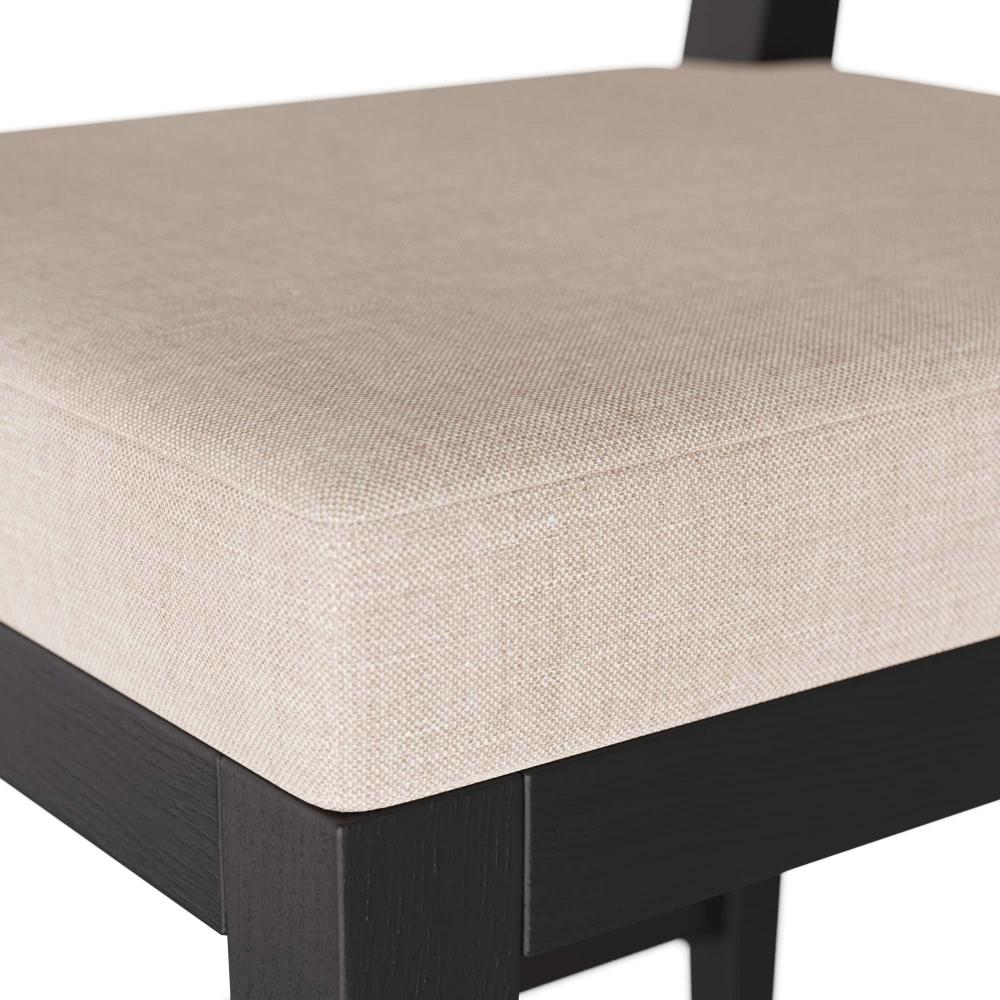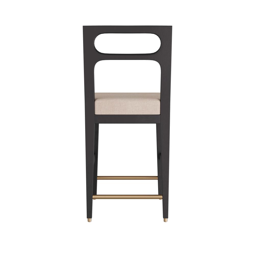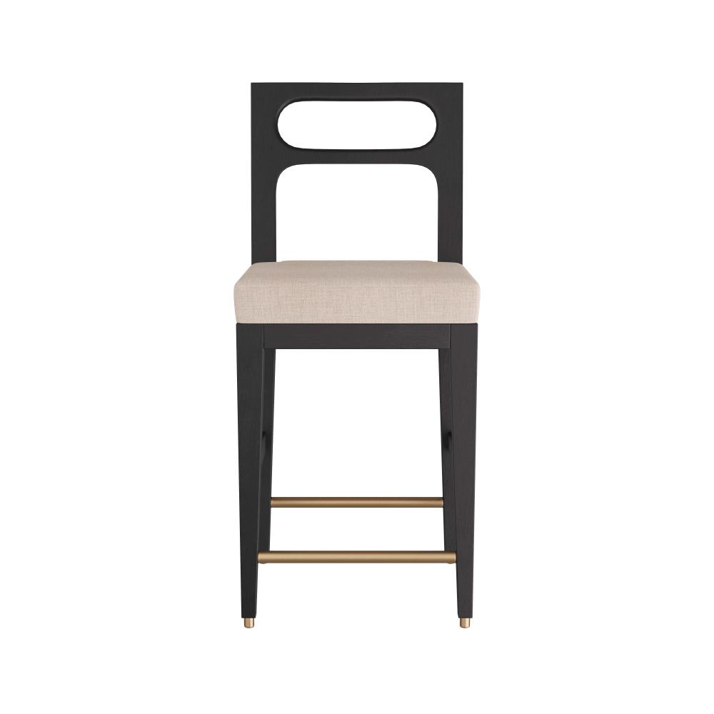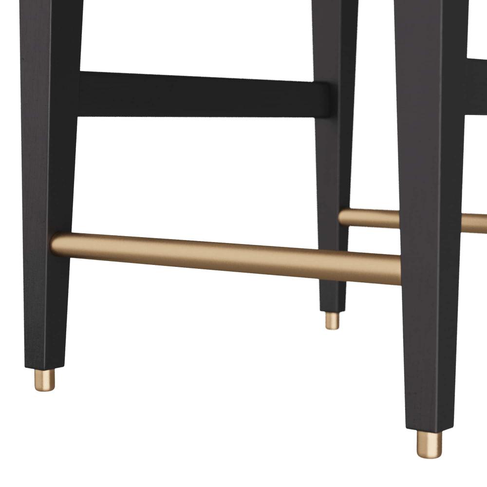 INSPIRED BY MIDCENTURY, ITALIAN, LADDER-BACK CHAIR CONSTRUCTION, OUR THADEN COUNTER STOOL IS REIMAGINED WITH THOUGHTFUL DETAILS AND SOFT, MODERN CURVES. THE SIMPLE, YET ELEGANT, CHAIR IS CRAFTED IN EBONY MANGO WOOD, WITH TAPERED LEGS, AND WITH A NATURAL LINEN SEAT. RECESSED SABOTS AND A STRETCHER IN ANTIQUE BRASS COMPLETE THE PIECE. FINISH WILL VARY.