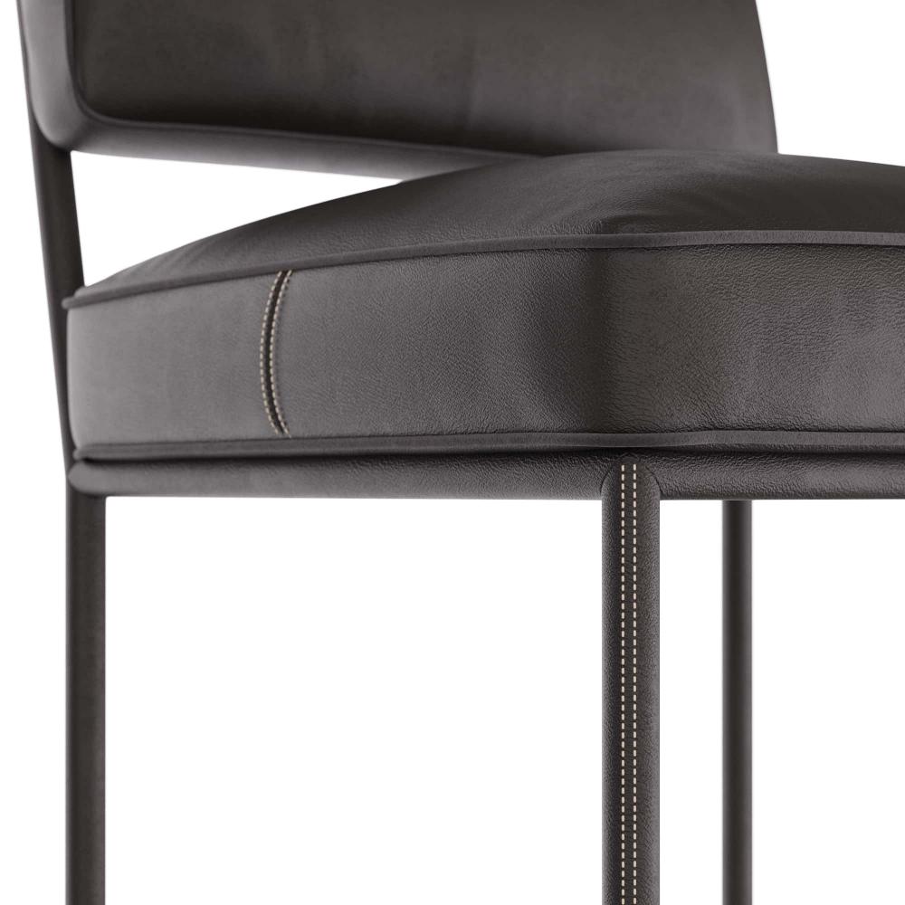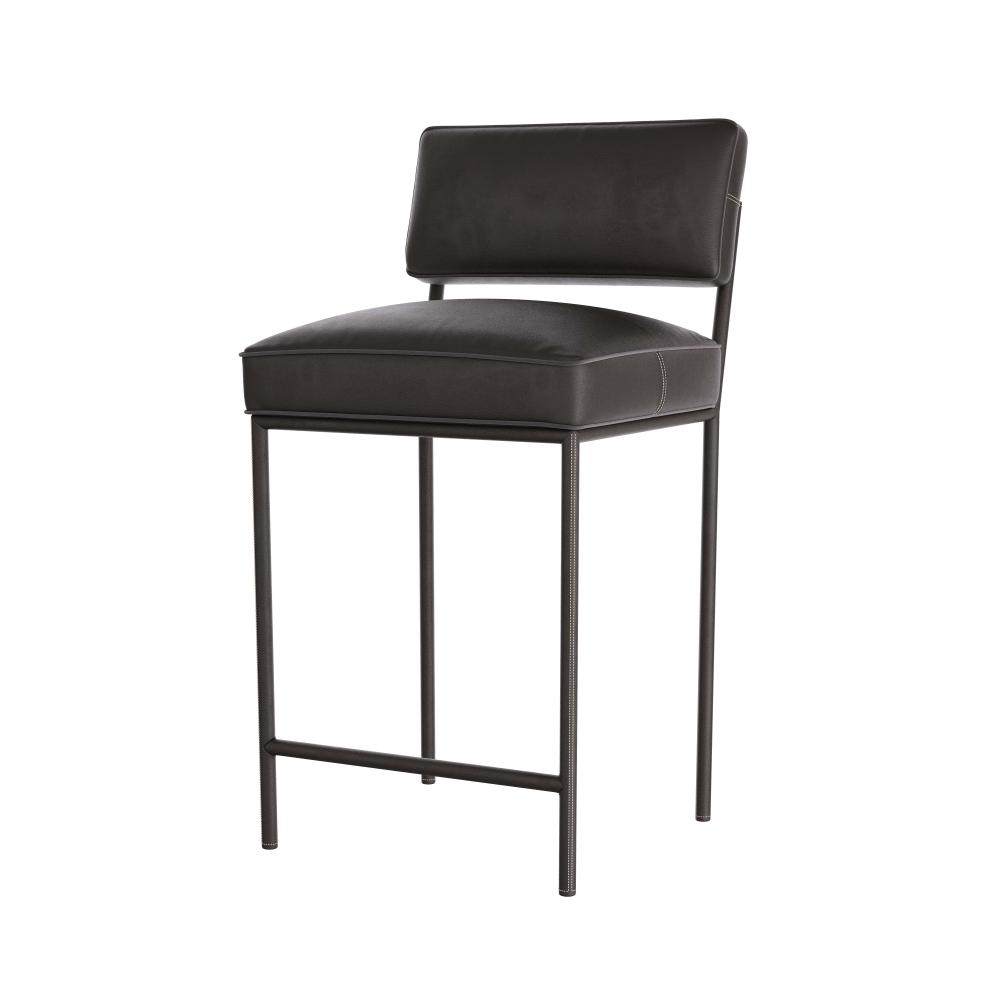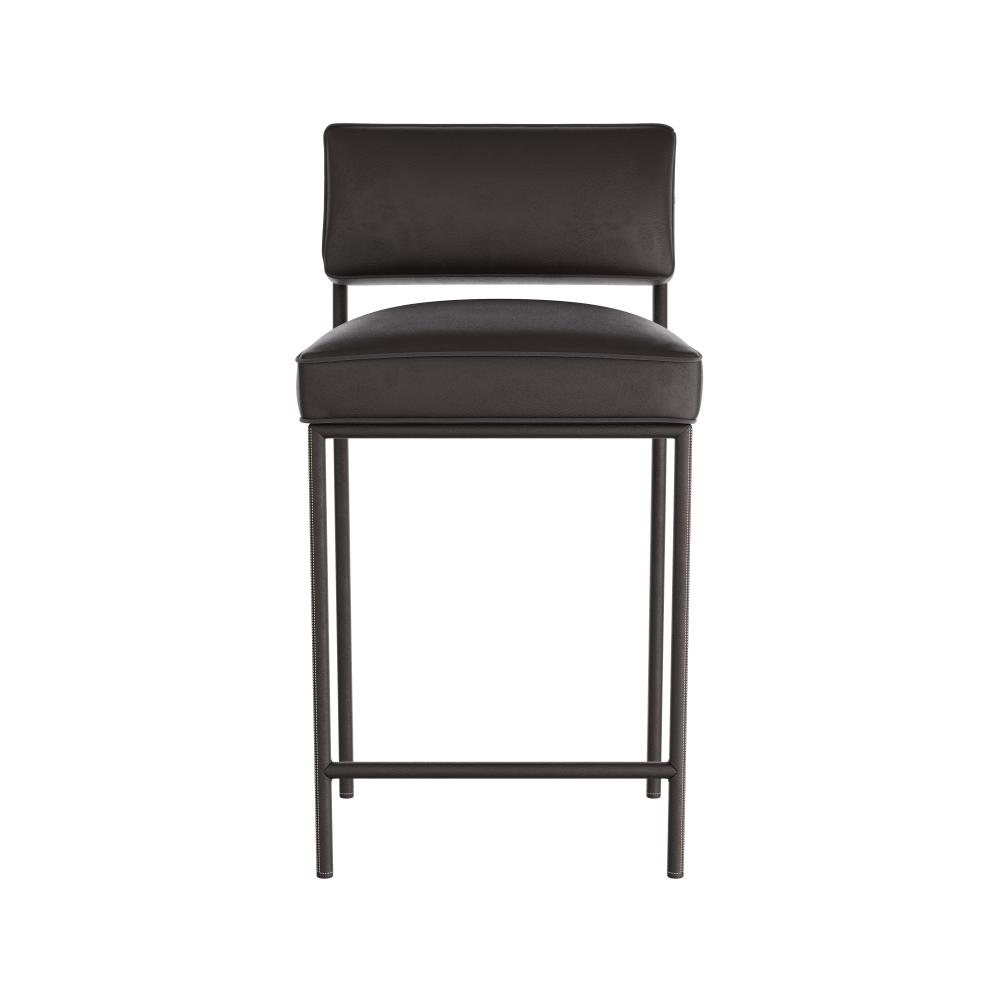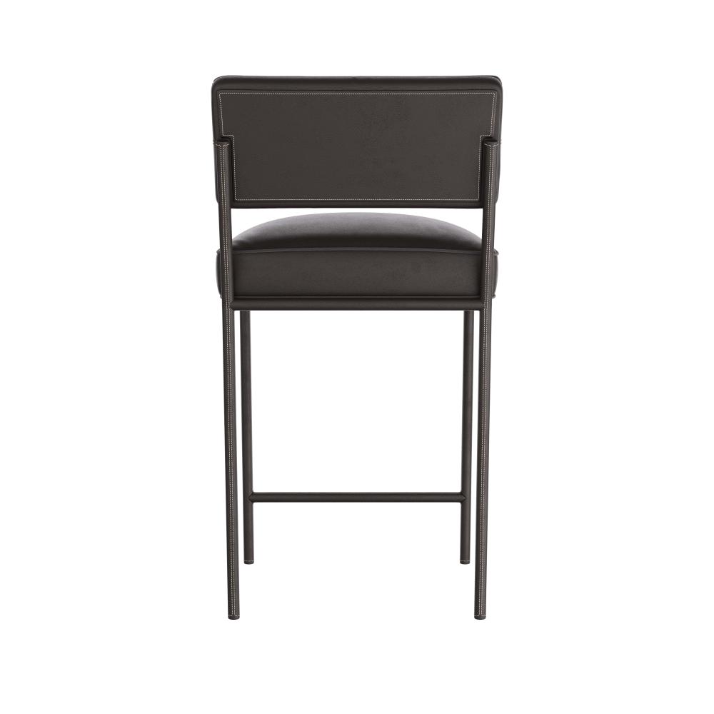 OUR FULLY UPHOLSTERED TOPANGA STOOL PULLS UP TO ANY COUNTER WITH EASE AND ELEGANCE. THE SLEEK CHAIR IS CREATED WITH A GRAPHITE LEATHER FRAME, SEAT, AND BACK, WITH GRAPHITE COORDINATING SUEDE PIPING DETAIL. FINISH WILL VARY.