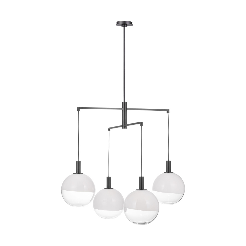 Crafted with Steel in a Aged Iron finish with milk / clear glass mix glass shades