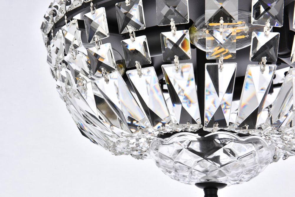 Warm, brilliant light is created by 4 e12 light bulbs. (not included)