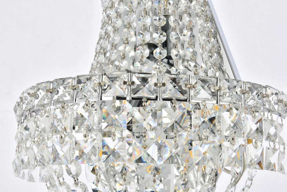 The Tranquil collection of wall sconces is everything you could imagine in the most decadent of lighting for your home. Captivating and serene, the radiance of this masterpiece will make you feel like a waterfall of lustrous sparkle enraptures you. Chrome-finished bands of exquisite emerald-cut crystals are finished off with mesmerizing spherical and droplet gems. These hypnotizing fixtures will add a touch of panache to your kitchen, dining room, foyer, or bedroom.
