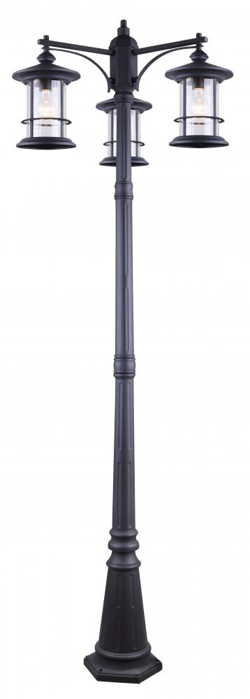 A. Treehouse, IOL156BK, 3 Lt Outdoor Post Light, Clear Glass, 100W Type A, 28 .5 IN W x 82 IN H