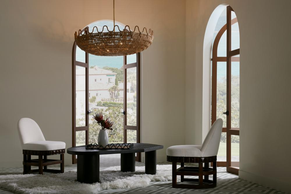 The Tribal Coffee Table has three distinct carved textures on a heavy mango wood slab whose weight is born on three large drum-like legs. The Tribal is both modern and primitive – an ebony sculpture that grounds the center of any interior.