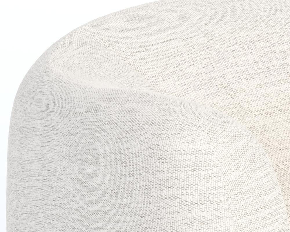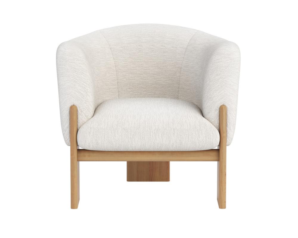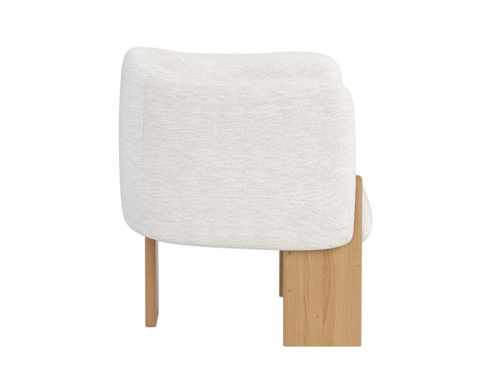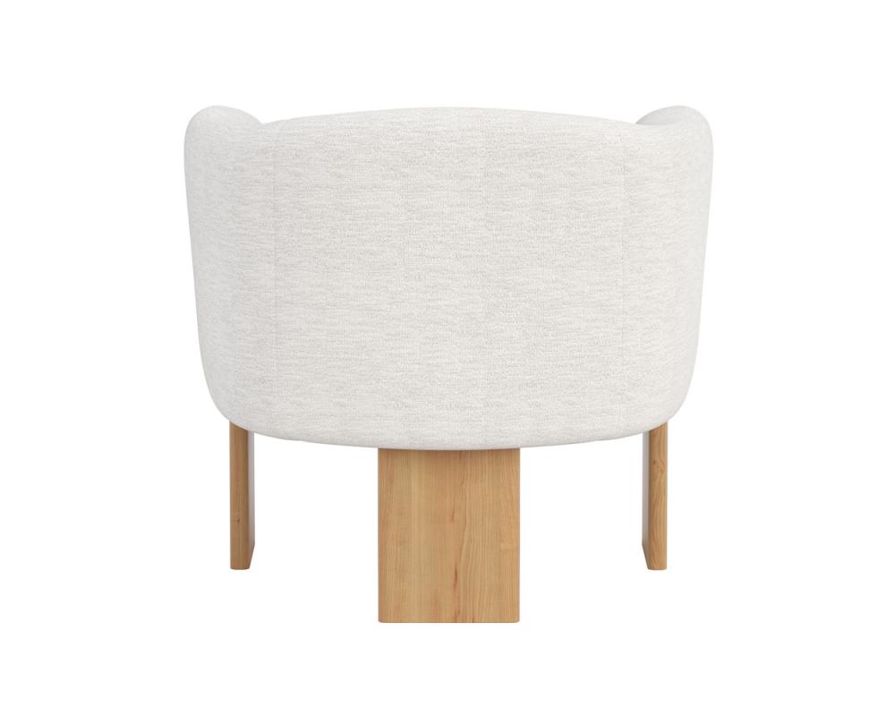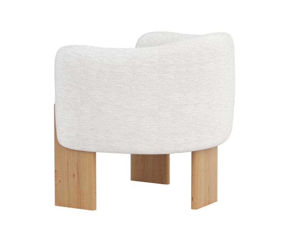 Embrace the luxurious comfort of the uniquely shaped Trine Lounge Chair. Generously padded and upholstered in our stylish dove cream fabric, this piece will complement any home aesthetic. Completed with a rustic oak wood base with a cerused finish on the legs. As wood is an organic, porous material, these pieces will contain natural variations of texture and may also exhibit fine indentations and cracks. Wood pieces will also display a disparity of colour and grain, and visible knots and burls that add to the character of each piece.