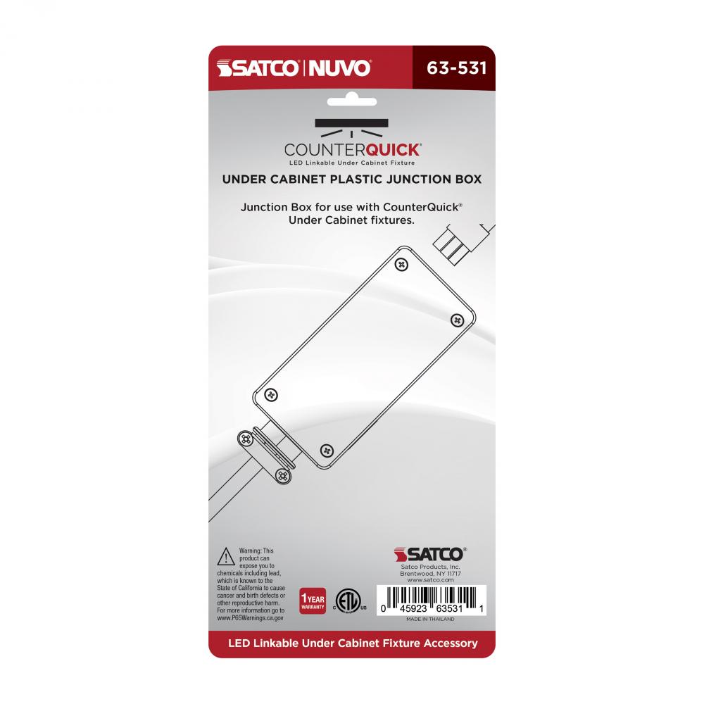 The 63-531 CounterQUICK plastic junction box in black, is perfect for applications where the device cannot be directly wired. These junction boxes can be used to power the fixture with an end-to-end connector or link cable.