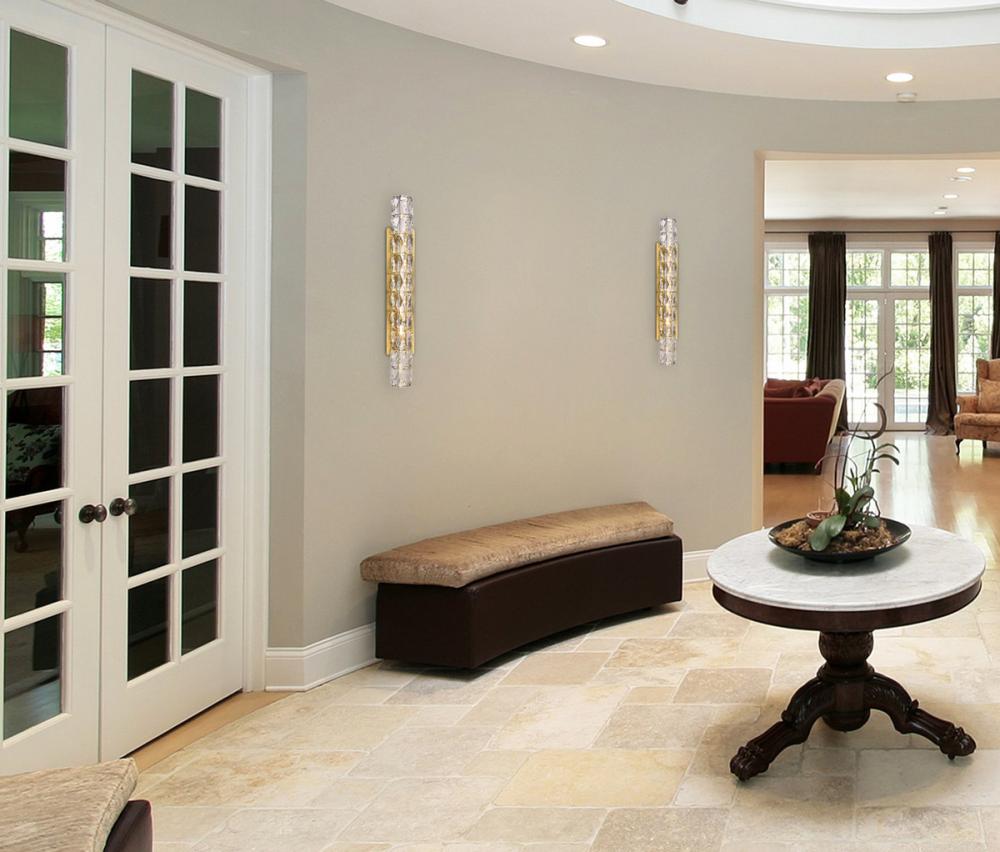 Valetta hanging fixtures dress up a living room, dining room, or bedroom without overwhelming the surrounding décor. This collection features an octagonal tube-shaped stainless-steel frame that’s covered almost entirely with shining rectangular clear crystals. A rectangular mounting plate is connected to the frame by slender cables that keep everything secure. A sleek metal finish completes this modern look with warm led lighting. Available in three sizes.