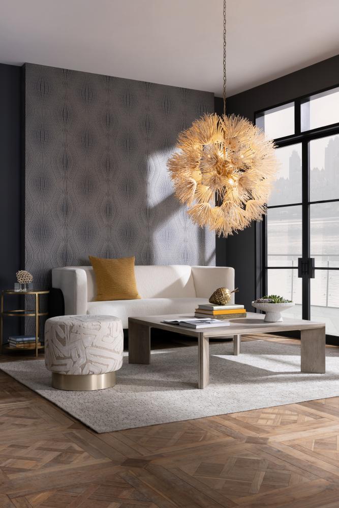 OUR VANCOUVER COCKTAIL TABLE IS BOTH GRAPHIC AND ELEGANT, EXISTING HARMONIOUSLY IN TRADITIONAL AND CONTEMPORARY ENVIRONMENTS ALIKE. THE PIECE IS CRAFTED IN SMOKE OAK VENEER IN A RADIAL PATTERN, WITH ANGLED, PLANER LEGS THAT FOLLOW THE SURFACE’S DESIGN. ANTIQUE BRASS IRON INLAYS HIGHLIGHT THE TABLE’S STRONG GEOMETRY. FINISH WILL VARY.