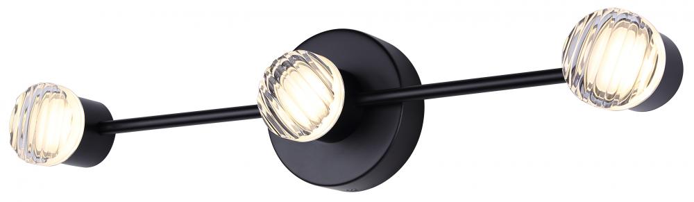 VANYA, LWF313A03BK, MBK Color, 3 Lt LED Wall Fixture, Texture Acrylic, 21W LED (Integrated), Dimmable, 3000K 1400Lumens, 4000K 1500Lumens, 5000K 1400Lumens 3CCT Switch, 23inch W x 5.125inch H x 3.625inch D