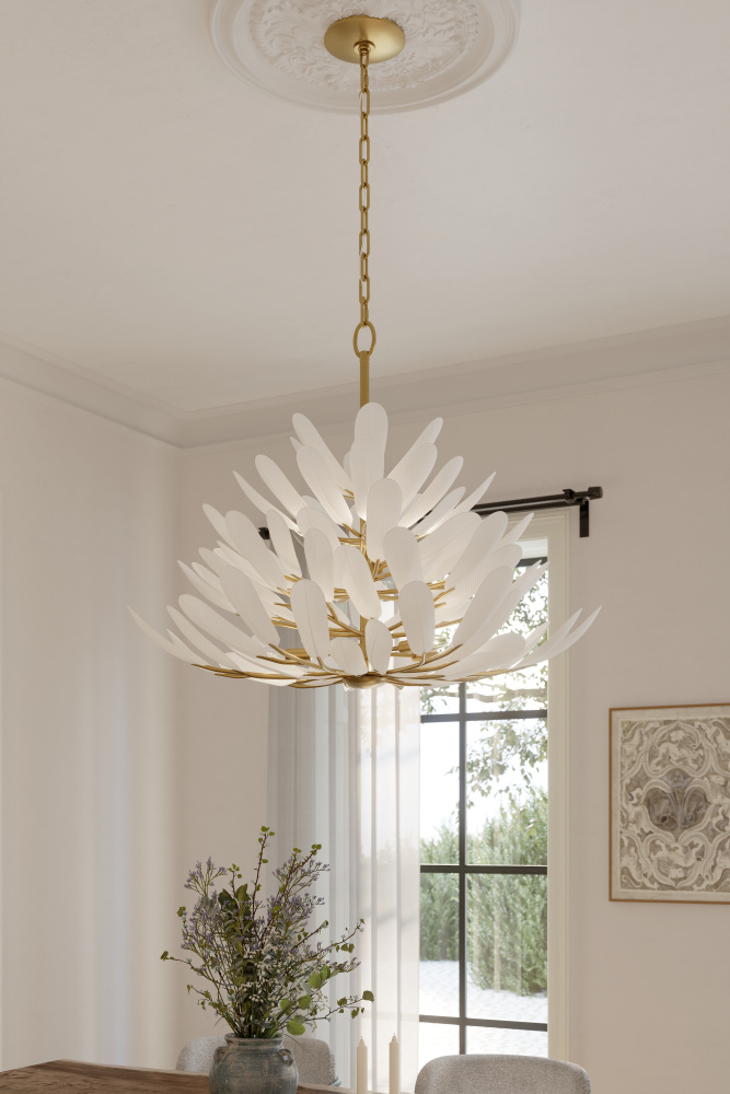The Vellinor chandelier blends transitional lines with warm, inviting illumination.