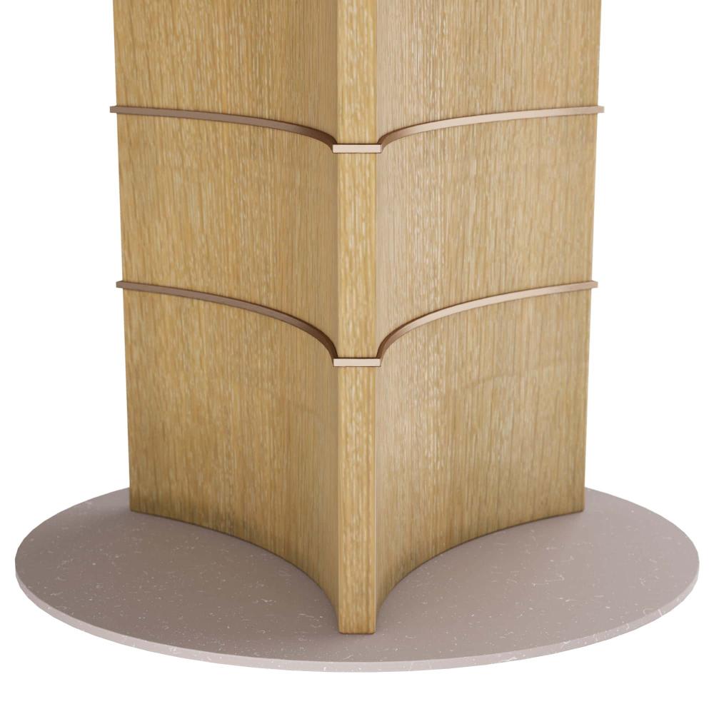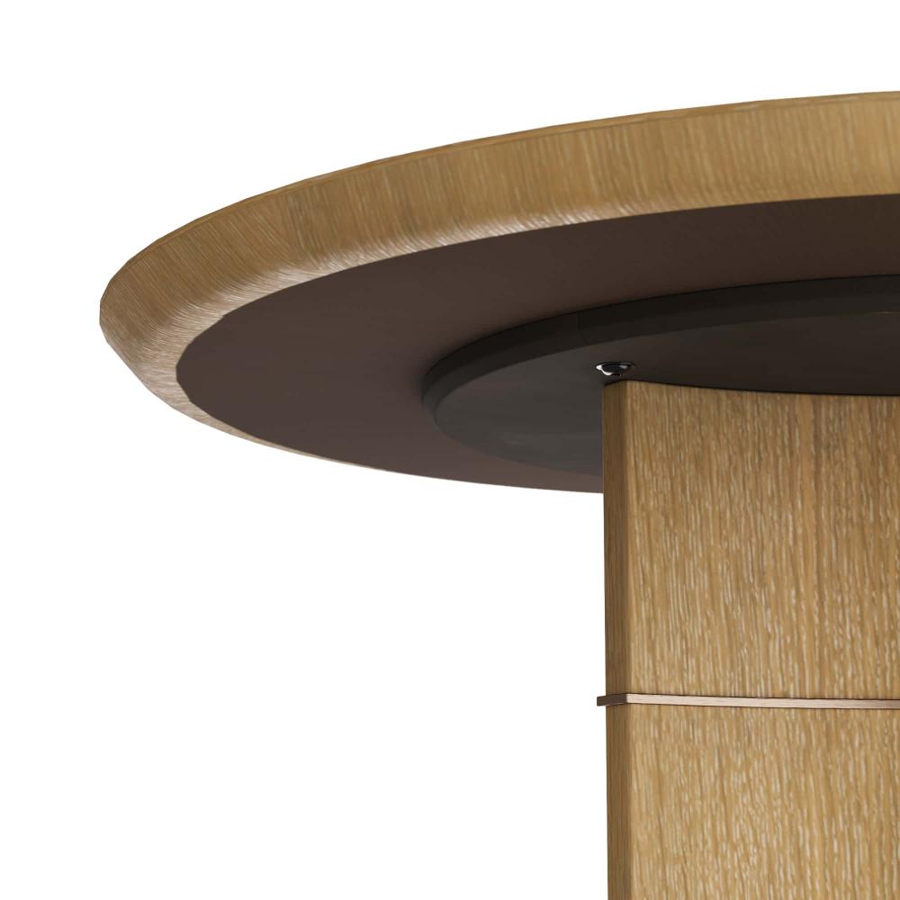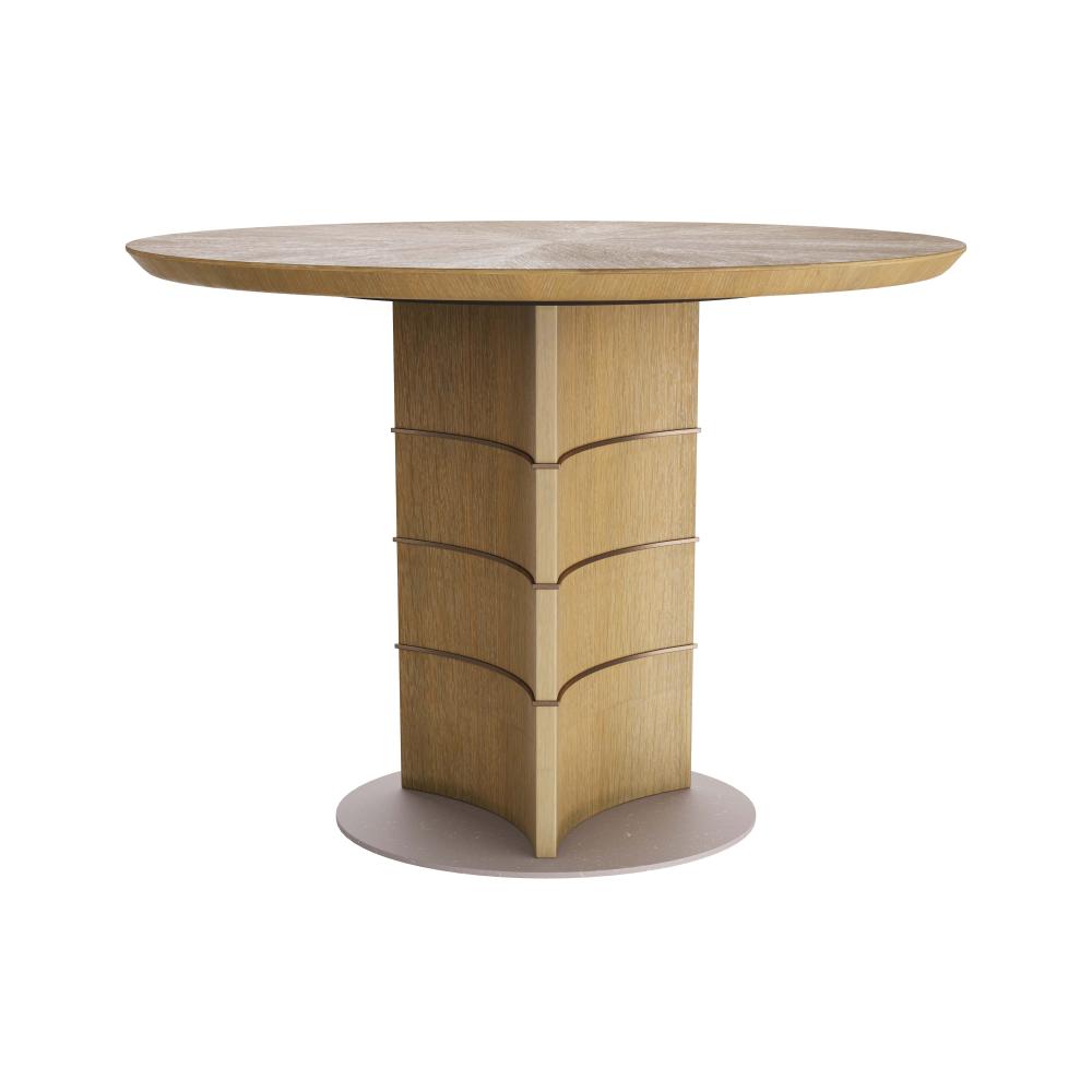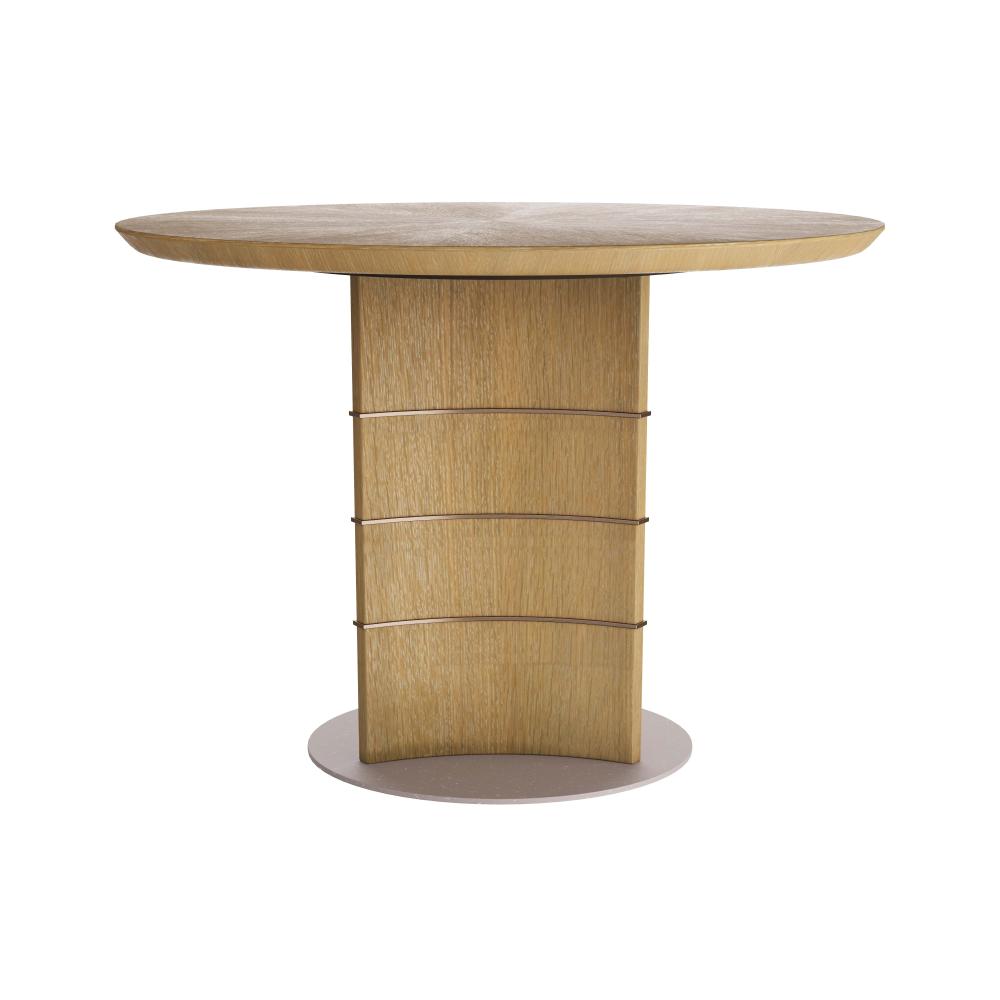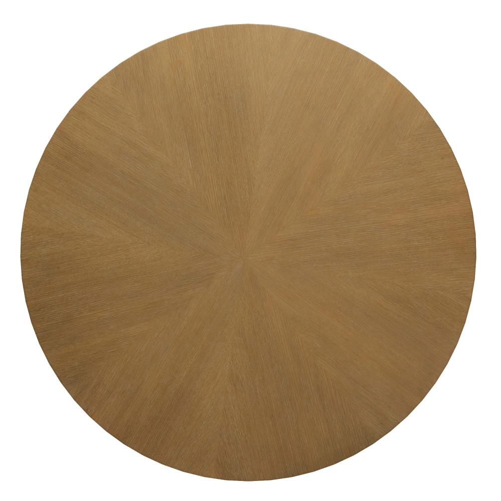 TRANSFORM ANY DINING ROOM OR ENTRY WITH THE EFFORTLESSLY STYLISH VETRALLA TABLE. THE PIECE IS CRAFTED IN OYSTER OAK VENEER WITH A GEOMETRIC PEDESTAL BASE THAT FEATURES ANTIQUE BRASS INLAYS THAT WRAP THE PEDESTAL HORIZONTALLY. THE TABLETOP IS CARVED IN A SCALLOPED SILHOUETTE. A ROUND, ANTIQUE BRASS DISC COMPLETES THE INSPIRED TABLE. FINISH WILL VARY.