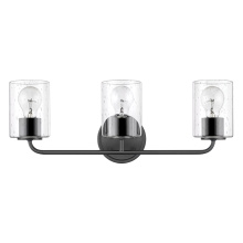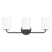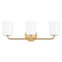 Exhibiting graceful curves balanced with simple industrial elements, our Vieira vanity sconce is a fascinating feature. Her extensive catalogue of stylish finishes, size options and glass shades are poised to enhance any bathroom setting, from farmhouse to fancy. Finished in exquisite aged brass, bold black or distinctive dark nickel, Vieira is guaranteed to add depth of character. She'll shine brightly with any of her eight glass options: pristine clear, classic clear with opal, sparkling clear reed, soft opal, smooth opal reed, fine painted line, engaging etched, or intriguing seeded. Poised to be the next sconce sensation, Vieira is worthy of a solo show.