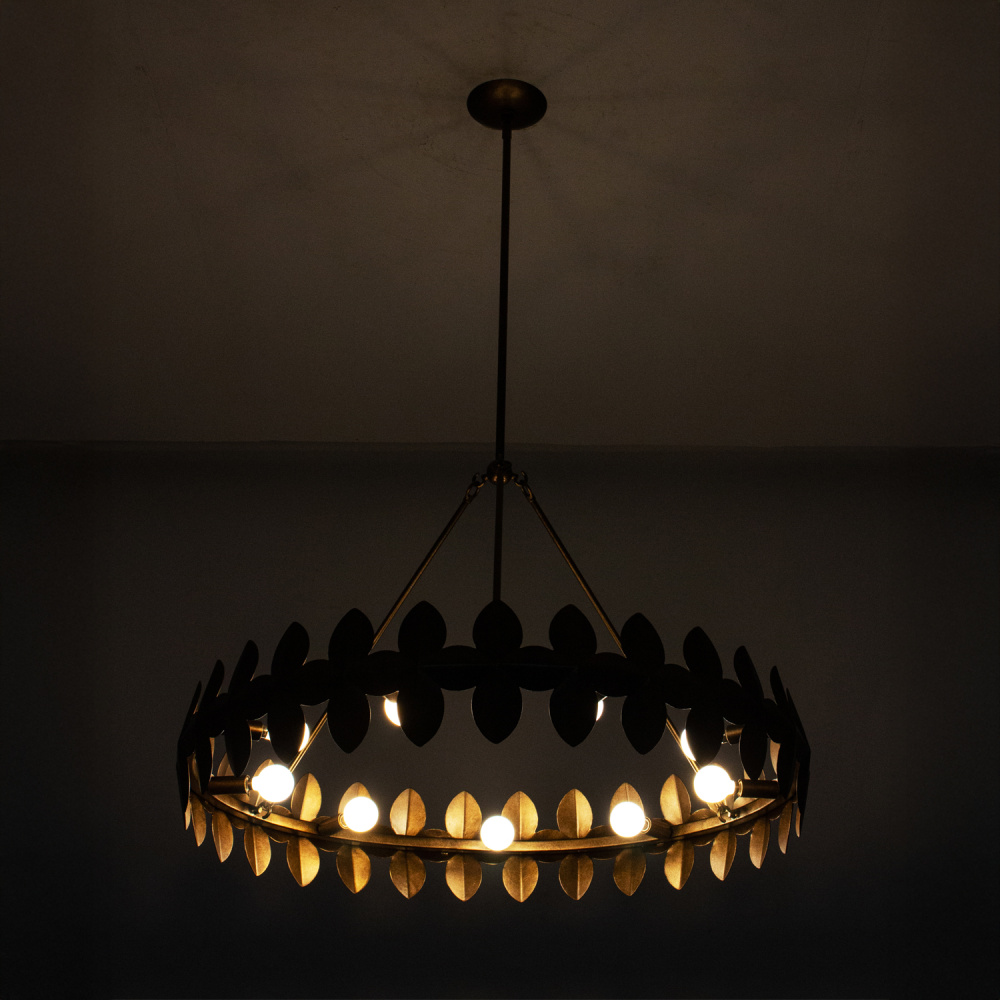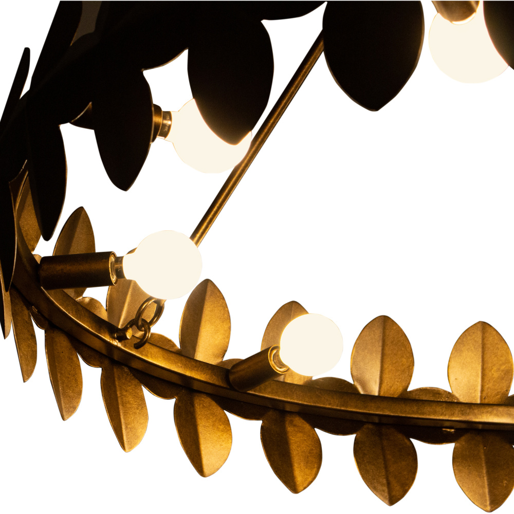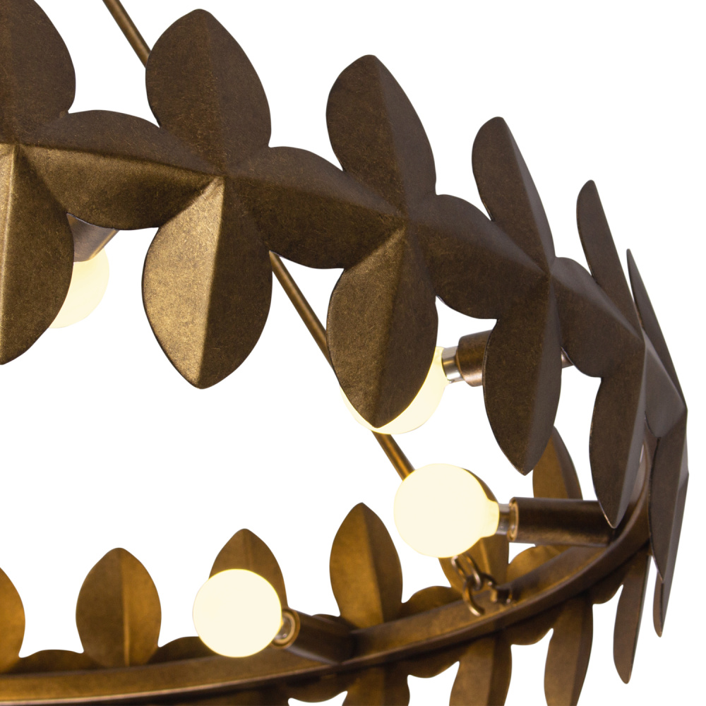 Crafted in steel by our skilled artisans, this family showcases a bold, abstract pattern in a low profile ring, paying homage to its laurel wreath inspirations. Our Pearlized Antique Brass finish (PAB) adds warmth and calmness, introducing a light and airy feel to a naturally heavy material.