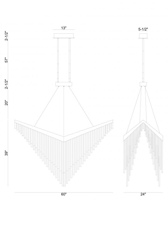 The chevron shape first found note in the heraldic services to the monarchy as proclaimer of news and information. Vivian uses a series of these “V” shapes to present stunning statements of lighting mastery that will instill a space with monarchical glory and timeless elegance.