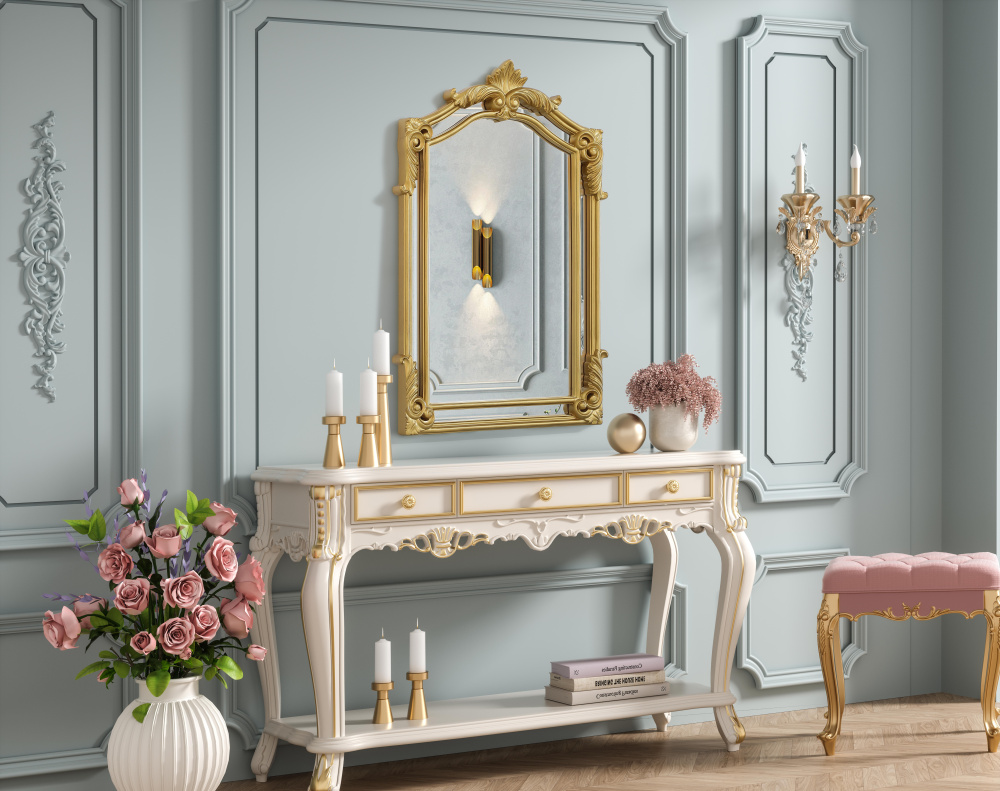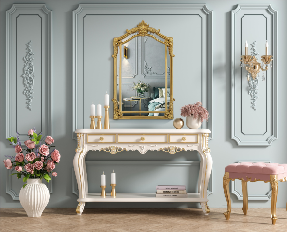 Whether placed in a living room, grand entryway, or above a vintage vanity, this mirror instantly enhances its surroundings with its regal presence.