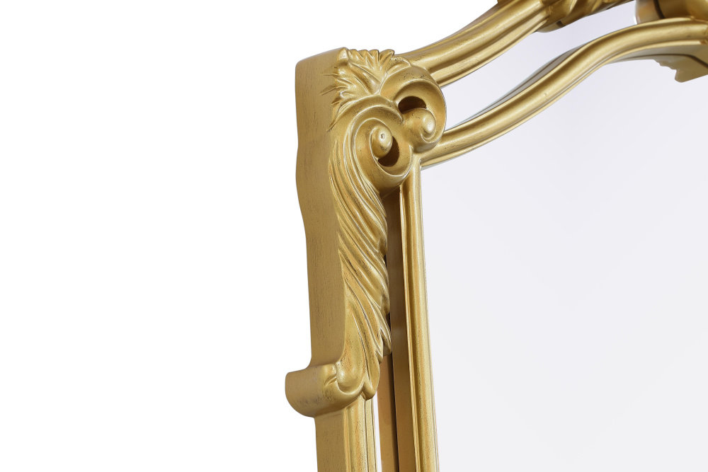 With its ornate crest and intricate corner embellishments, this mirror transforms any space into a masterpiece of classic décor