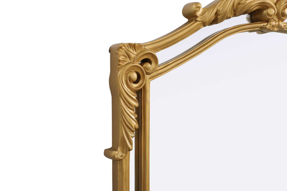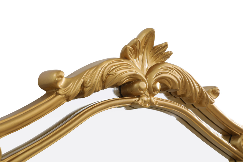 With its ornate crest and intricate corner embellishments, this mirror transforms any space into a masterpiece of classic décor