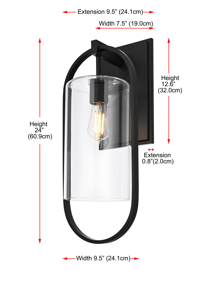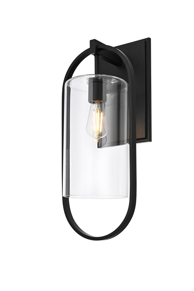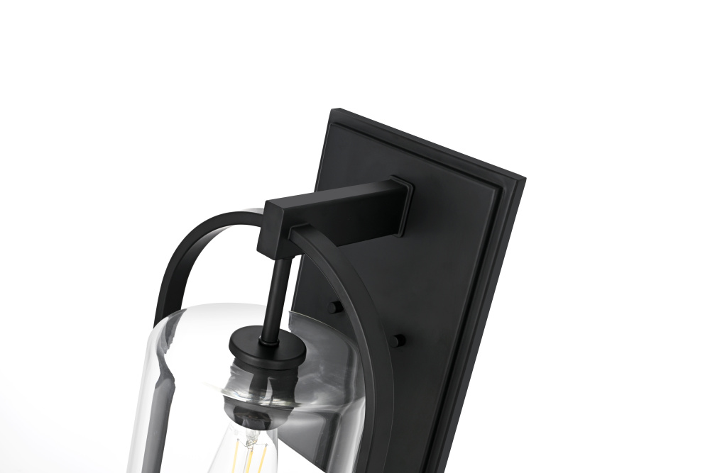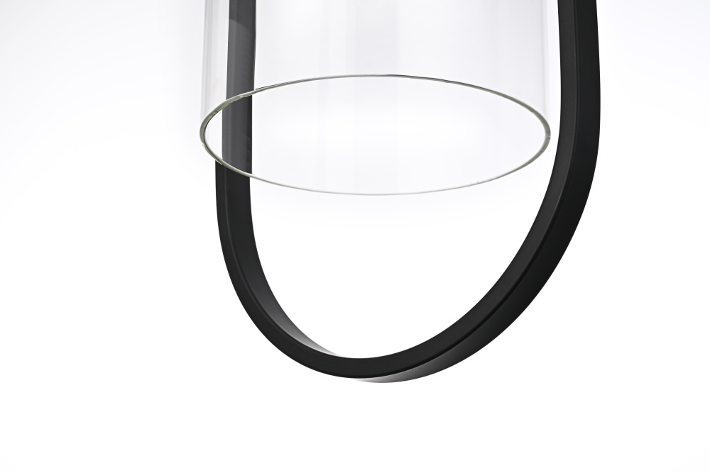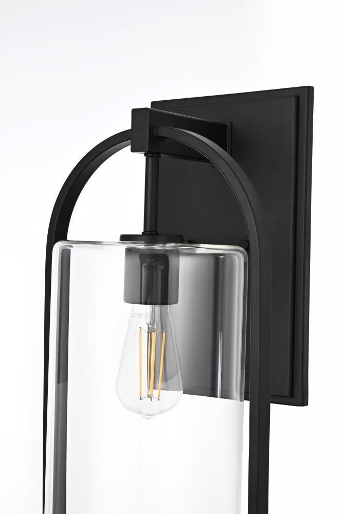 A transparent glass shade encases the bulb, allowing maximum brightness while adding a refined touch to the design.