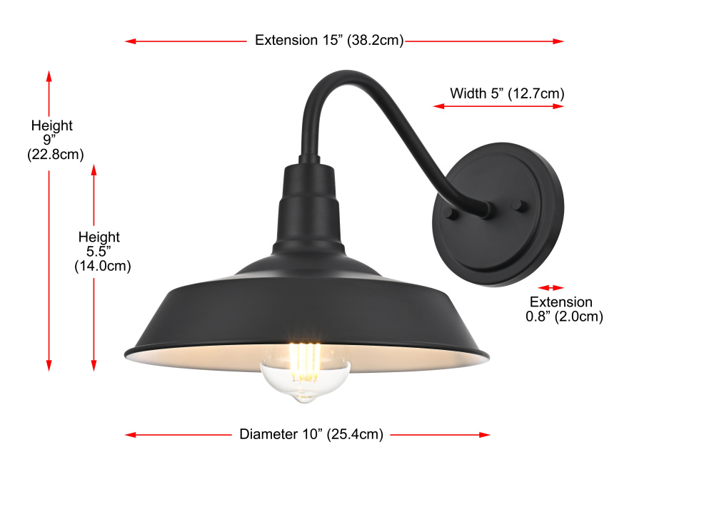 A broad, flared shade maximizes light coverage, ensuring pathways, patios, and garage doors are well-lit with a practical and stylish glow.