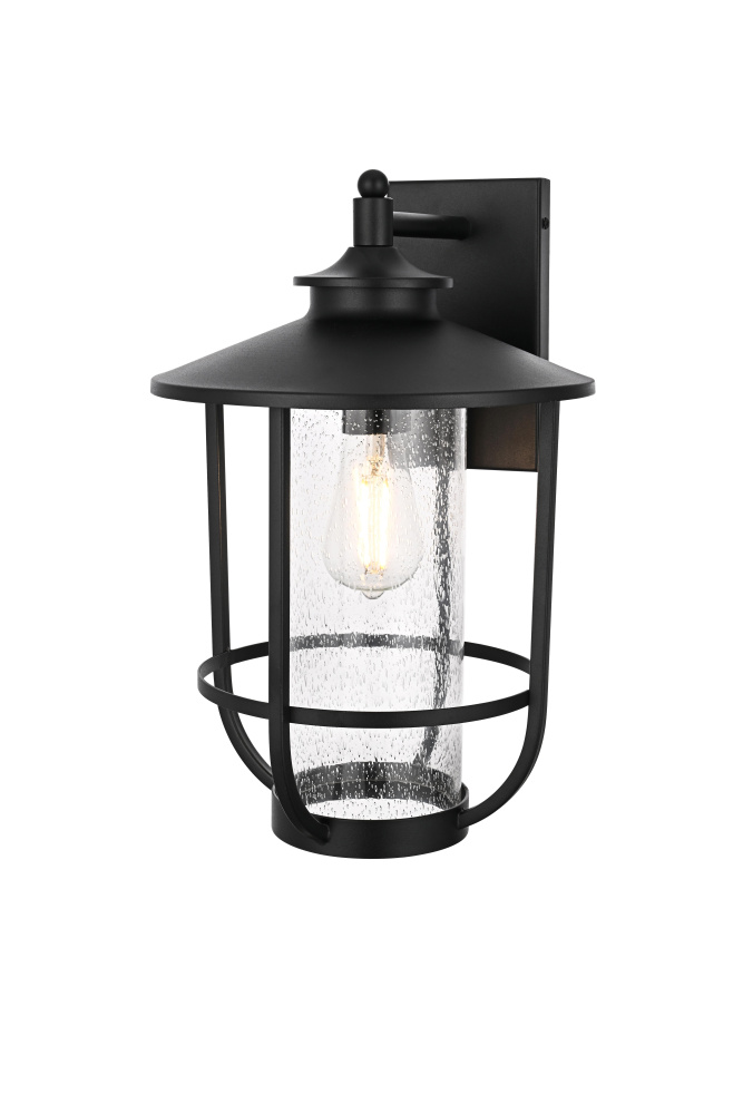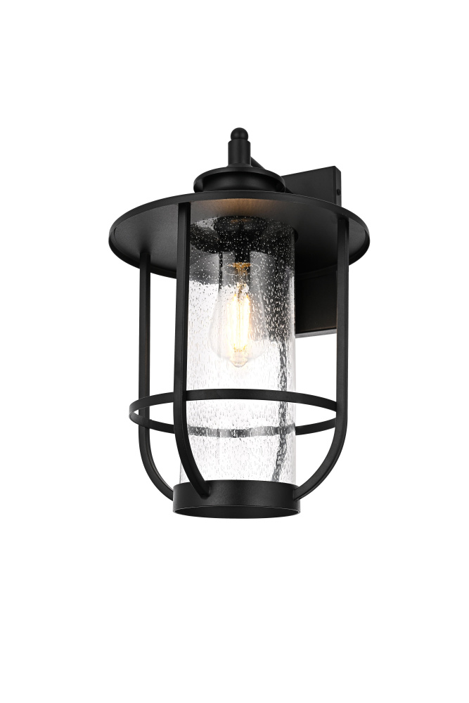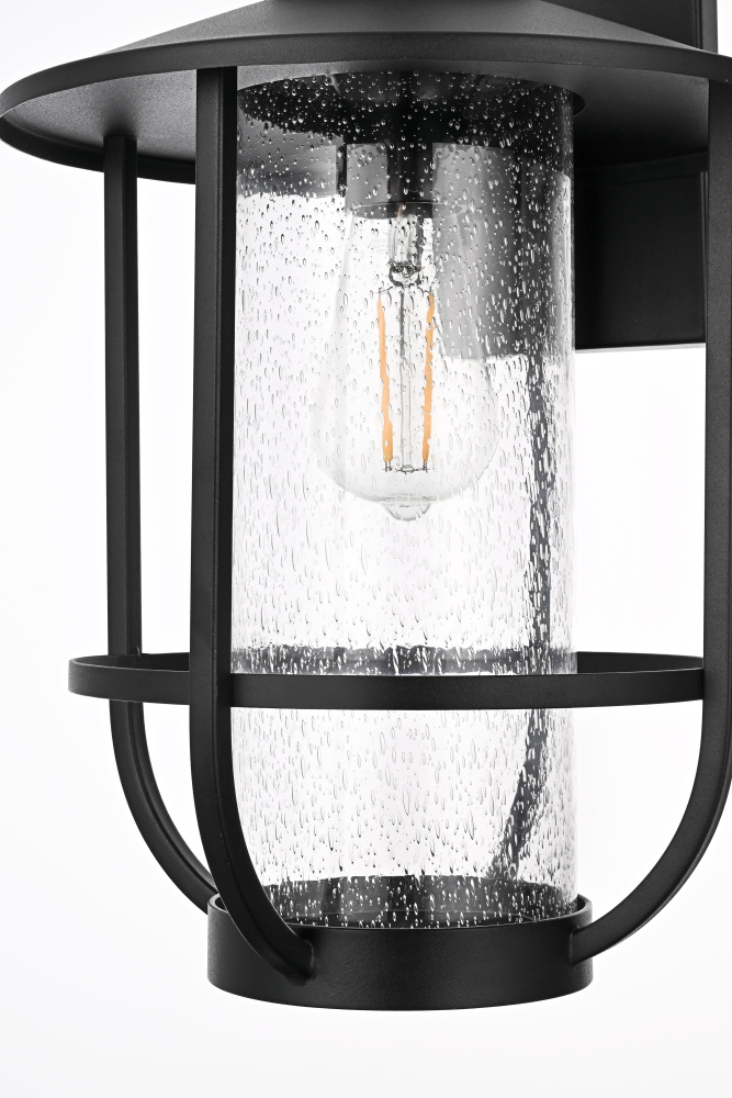 Constructed from iron and clear seeded glass, this light is built to withstand the elements while offering an aesthetically pleasing style.