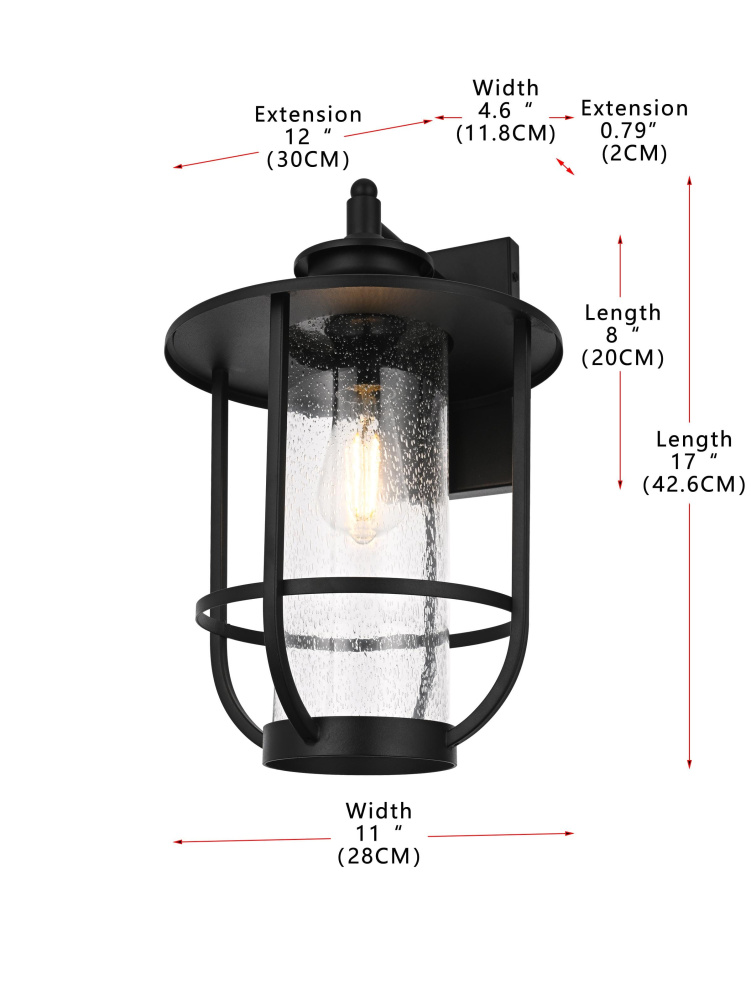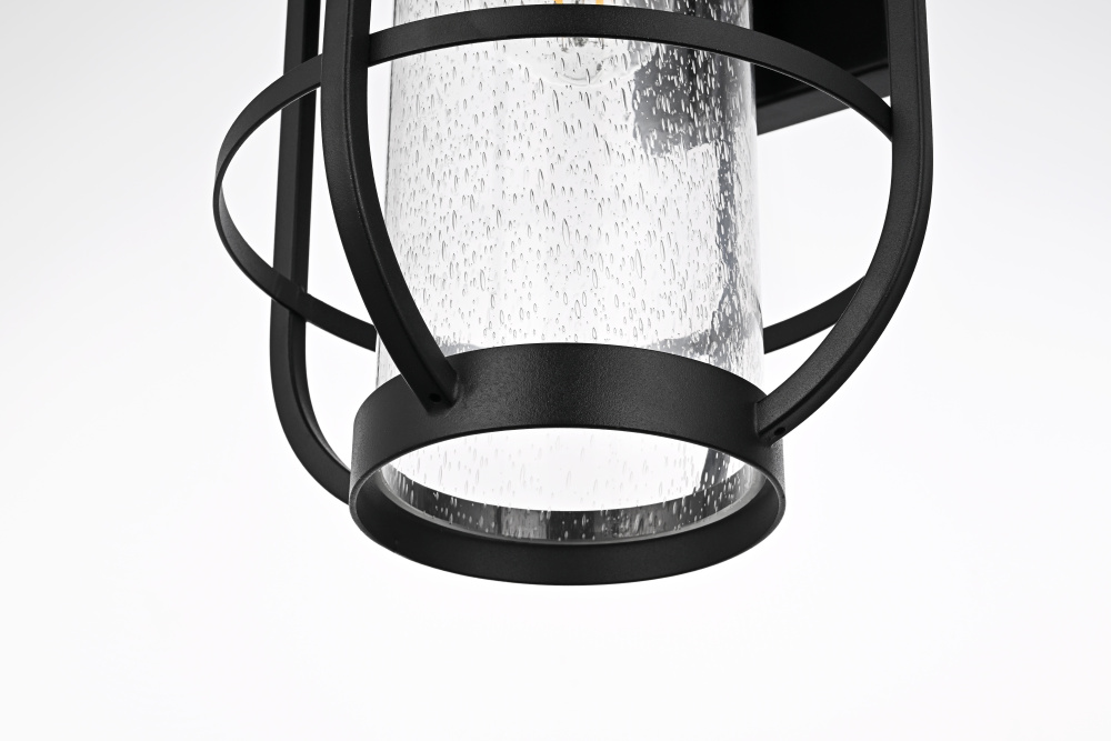 The clear seeded glass adds texture, diffuses light beautifully, and offers an eye-catching look while illuminating outdoor areas effectively.
