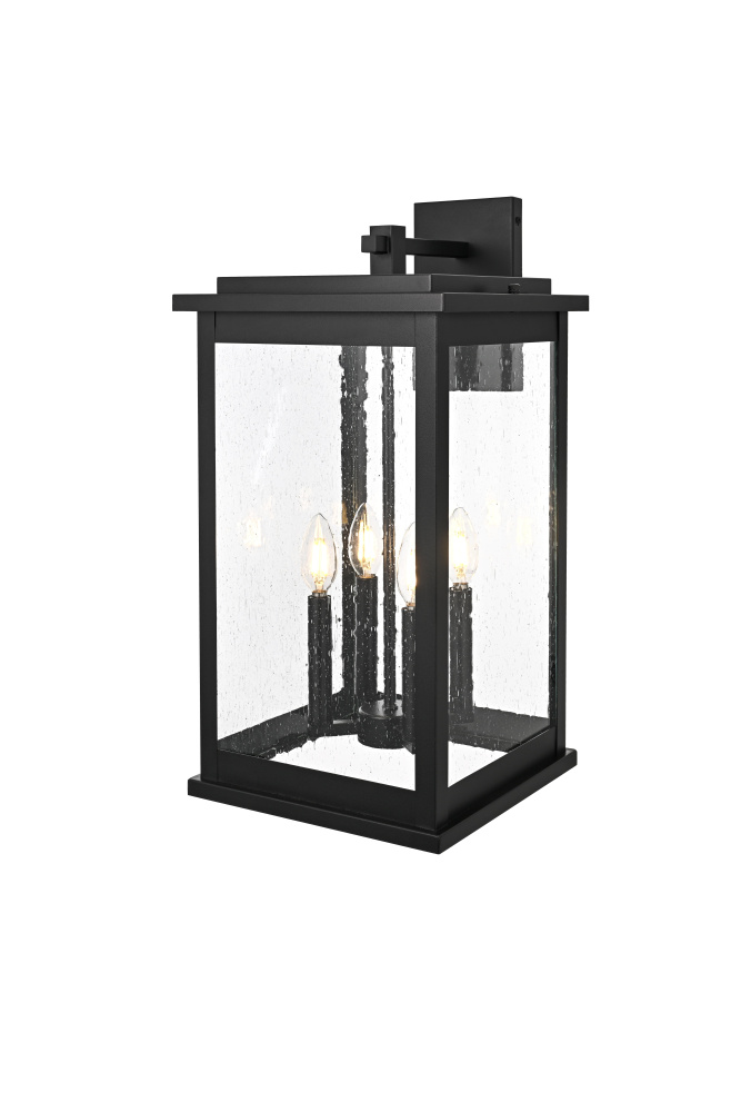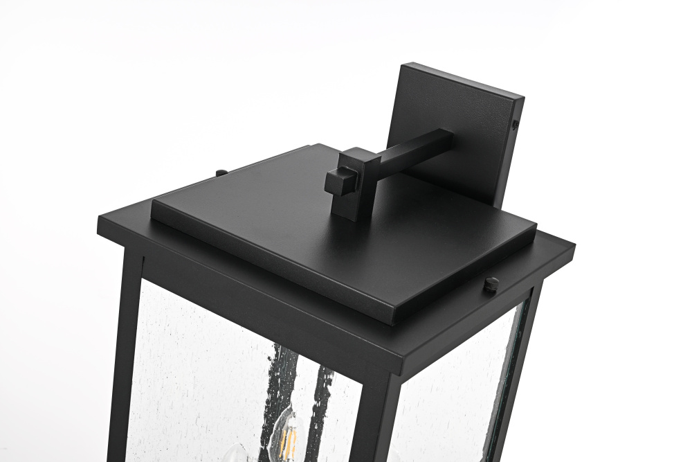 Constructed from durable iron, this wall sconce is made to withstand the elements, providing lasting reliability for outdoor use.
