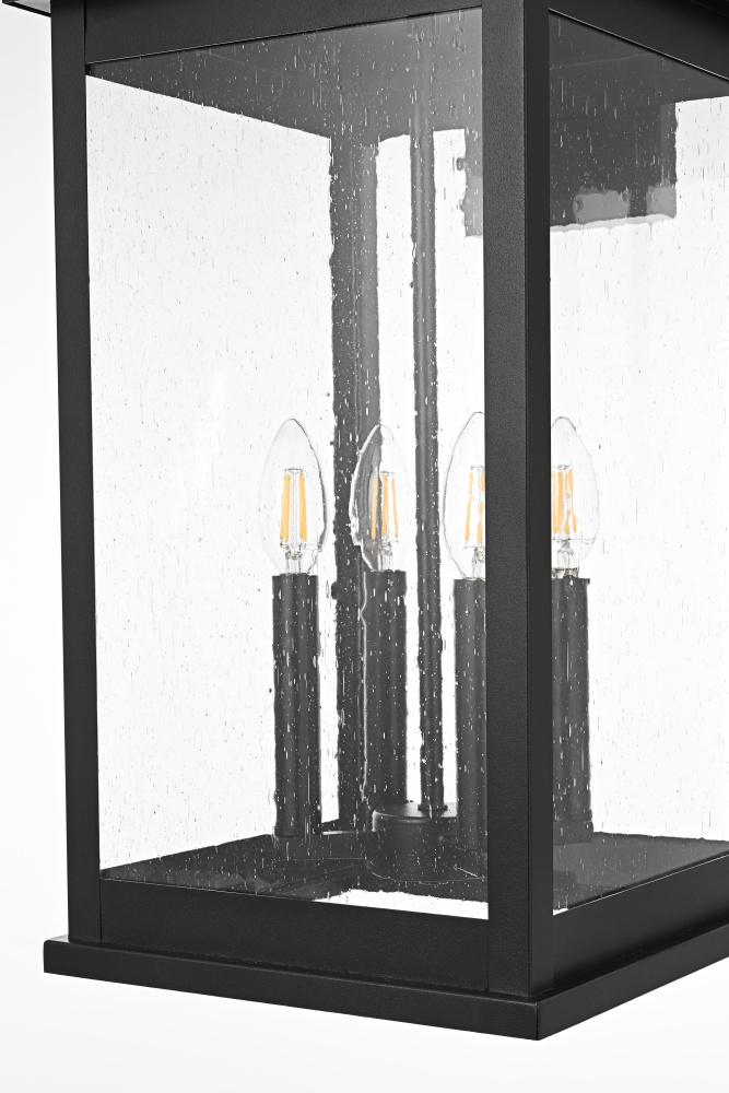 Clear seeded glass panels add a charming texture that diffuses light for a warm glow.
