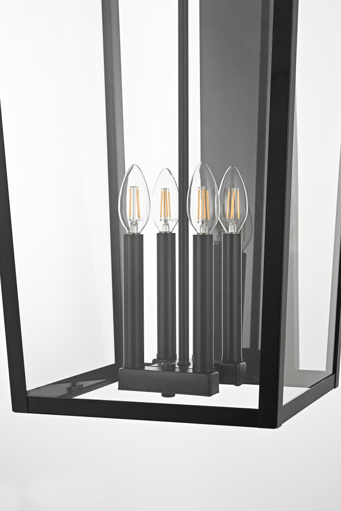 The sconce features crystal-clear glass panels, offering unobstructed illumination that warmly lights up entryways, walkways, or patios. The transparency of the glass allows the bulbs to shine brightly, creating a welcoming environment.