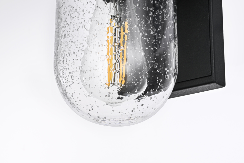 Tiny bubbles within the clear glass create a striking textured effect, diffusing light beautifully while maintaining a crisp and open aesthetic.