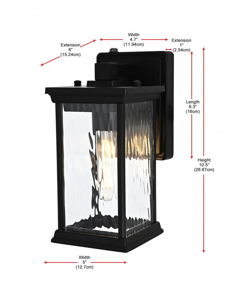 Featuring rippled water glass panels, this wall sconce not only provides functional illumination but also enhances the look with interesting light reflections and patterns, adding a layer of depth to your outdoor spaces.