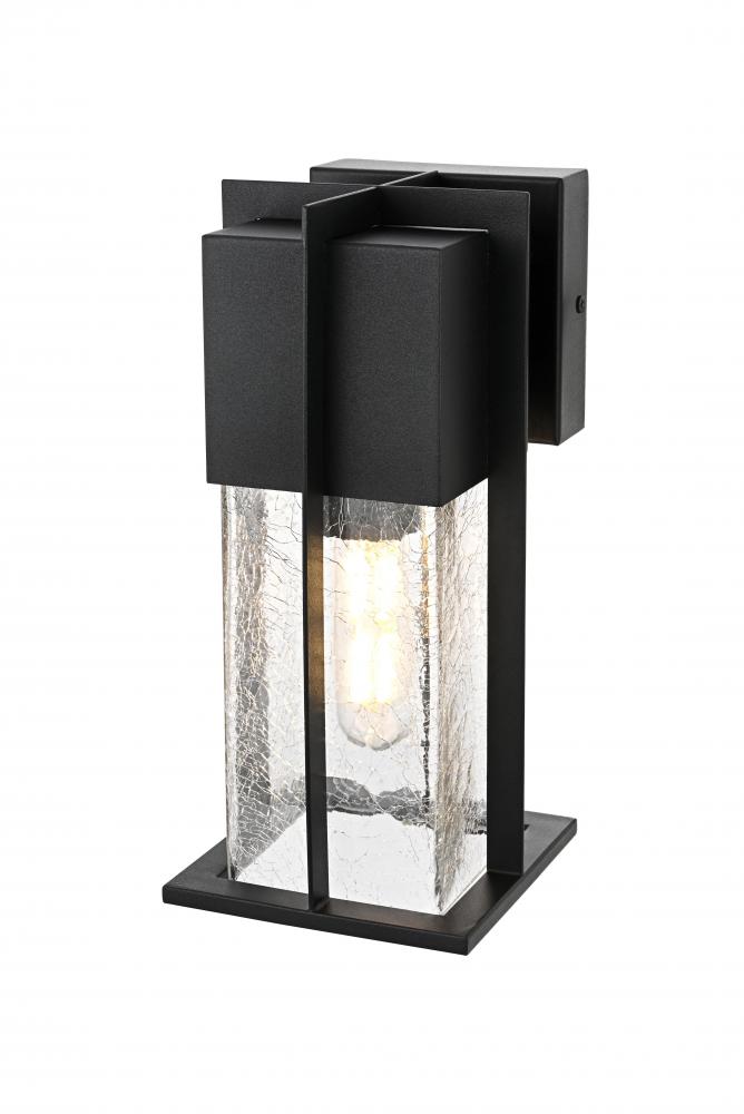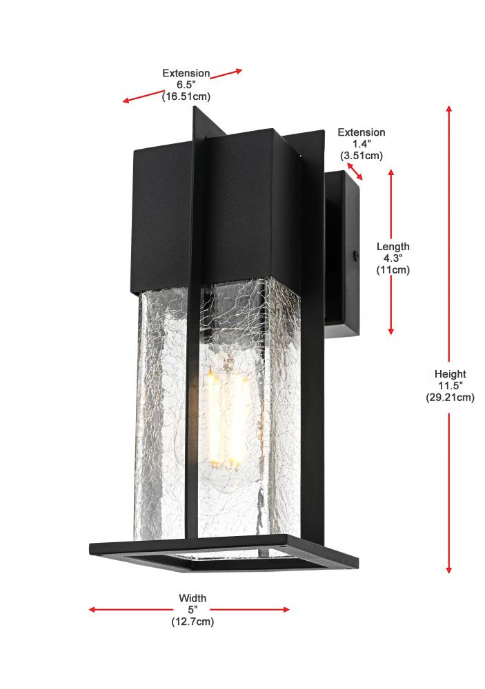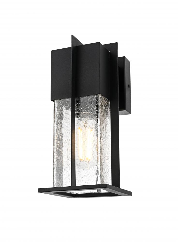 The sconce features crackled glass that gives an interesting texture to the light, adding a soft and welcoming diffusion to any exterior space.