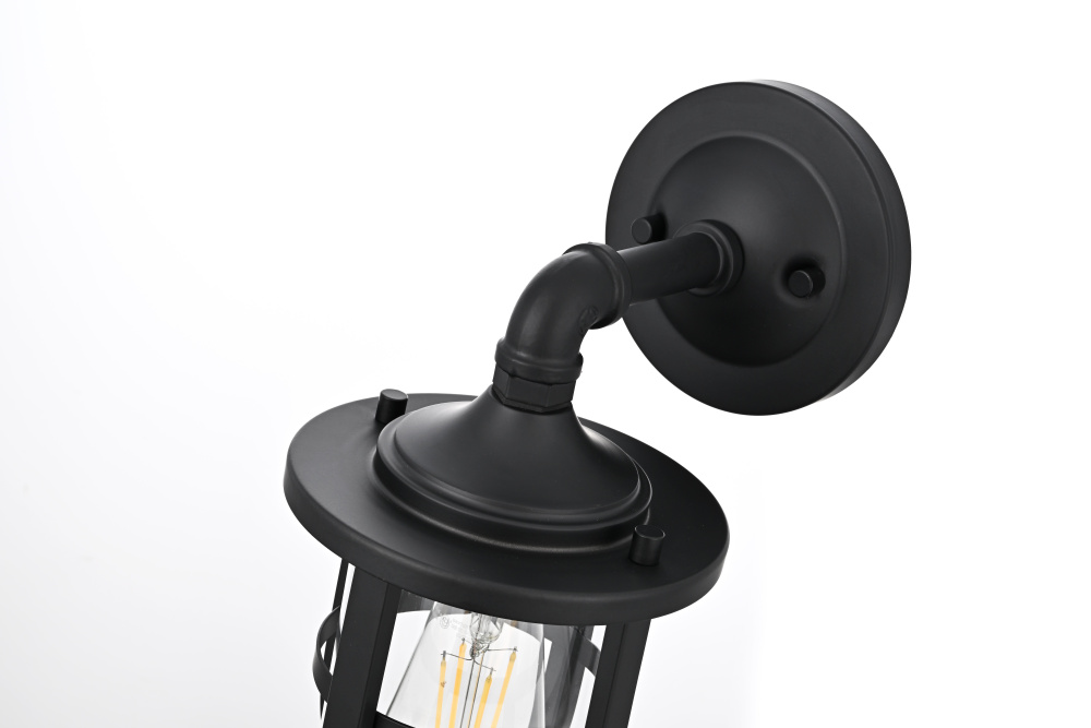The sturdy curved arm and round backplate resemble classic piping details, adding an industrial touch that pairs well with farmhouse, nautical, and modern exterior settings.